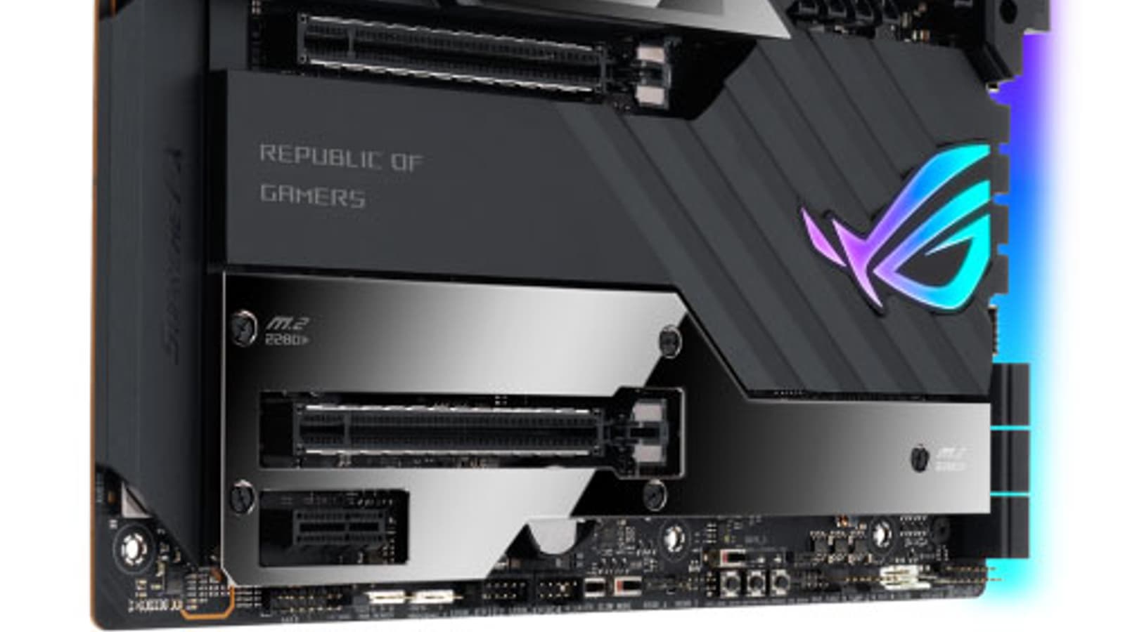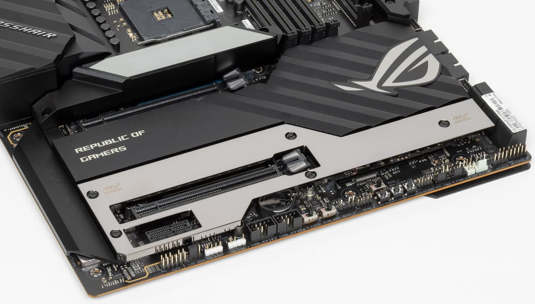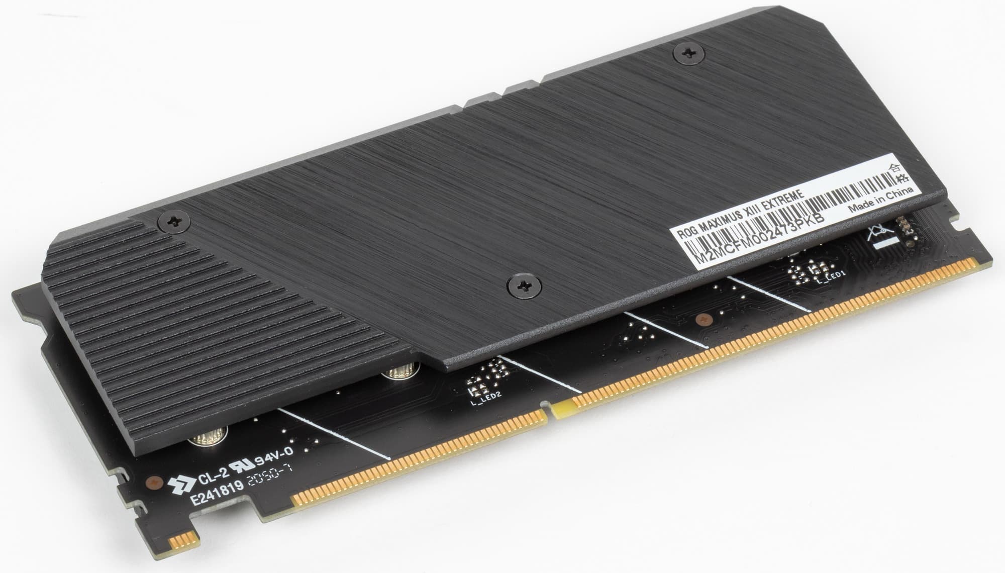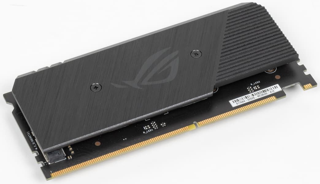 Все топовые материнки ROG укомплектованы фирменным слотом для особого модуля DIMM.2, и сам модуль также входит в комплект поставки.
