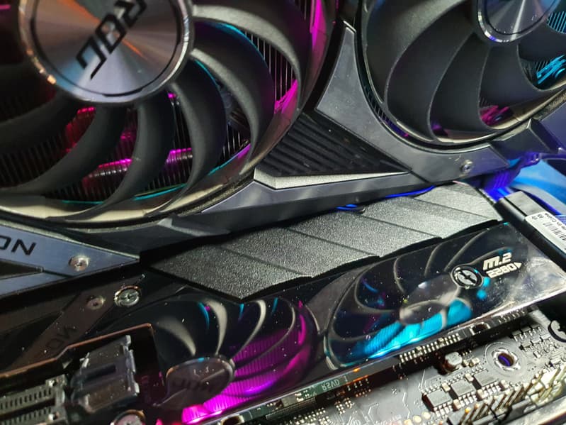 Все M.2 слоты имеют радиаторы. Верхний M2_1 обладает отдельным радиатором (где OLED экран), когда как остальные два нижних слота M.2 имеют общий радиатор.