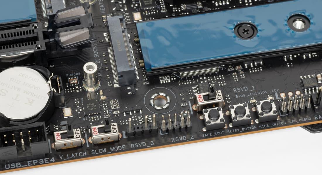 Для поддержания стабильных частот на шине PCIe 4.0 (и для нужд оверклокеров) имеется внешний тактовый генератор от Renesas (ex-ICS), который часто встречается на платах Asus, промаркированный как ProClock II.