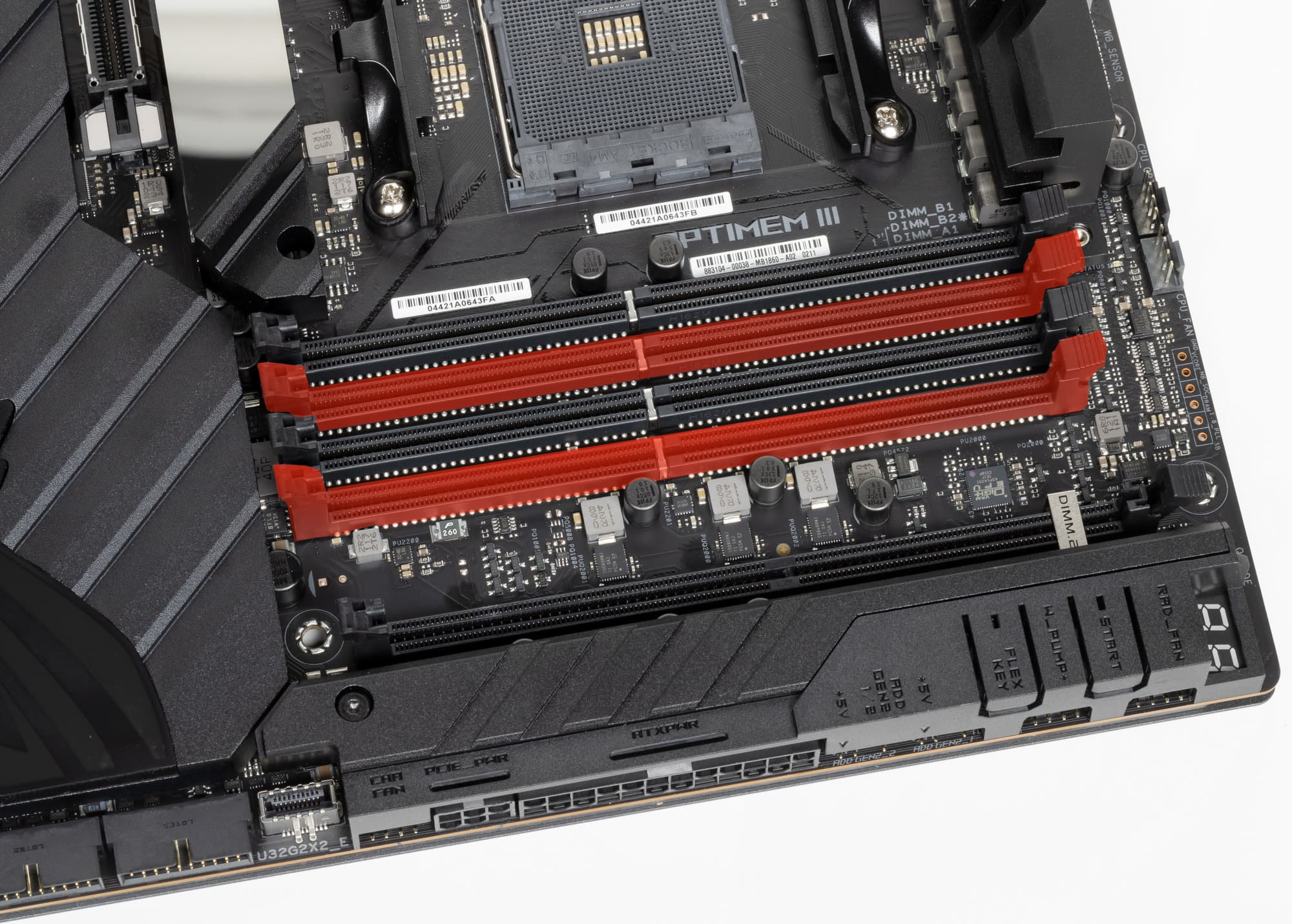 Всего у платы 6 разъемов Serial ATA 6 Гбит/с + 3 слота для накопителей в форм-факторе M.2 (+2 слота М.2 через фирменный слот ROG DIMM.2). 4 порта SATA реализованы через чипсет X570 и поддерживают создание RAID.