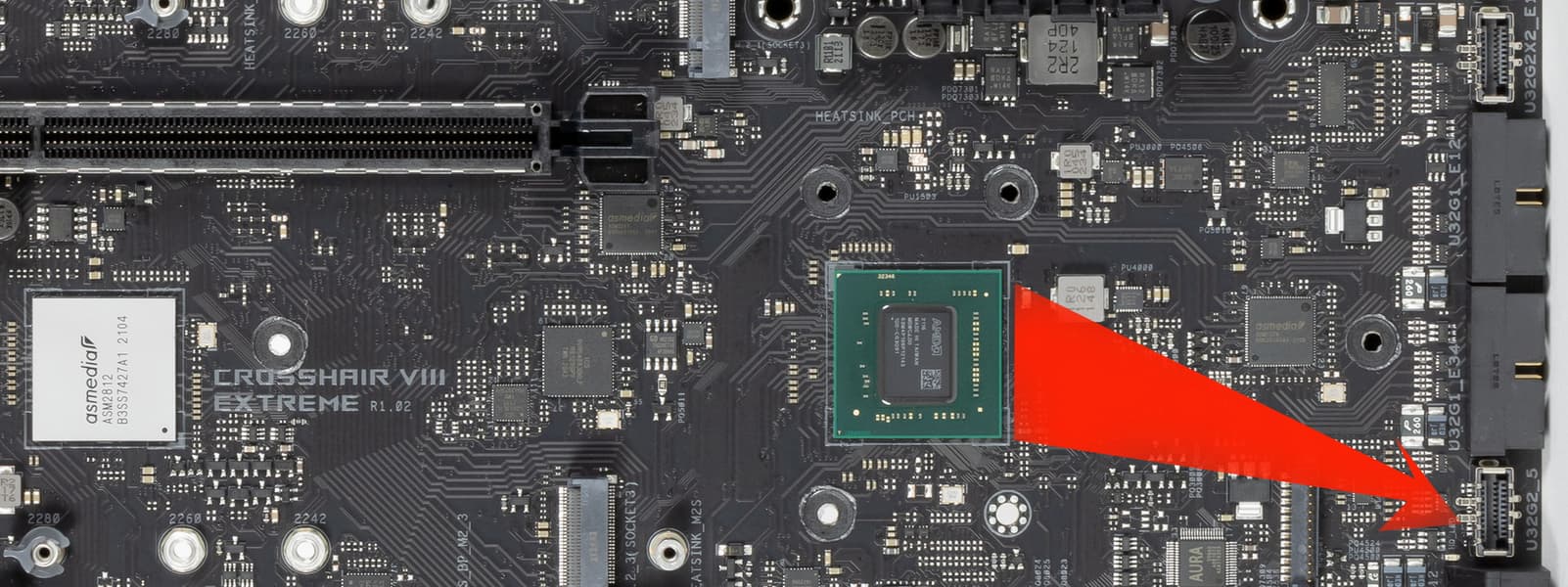 - 1 порт USB 3.2 Gen2x2: реализован через ASMedia ASM3241 (на него потрачены 2 линии от хаба ASM2812) и представлен внутренним портом Type-C для подключения к соответствующему разъему на передней панели корпуса;