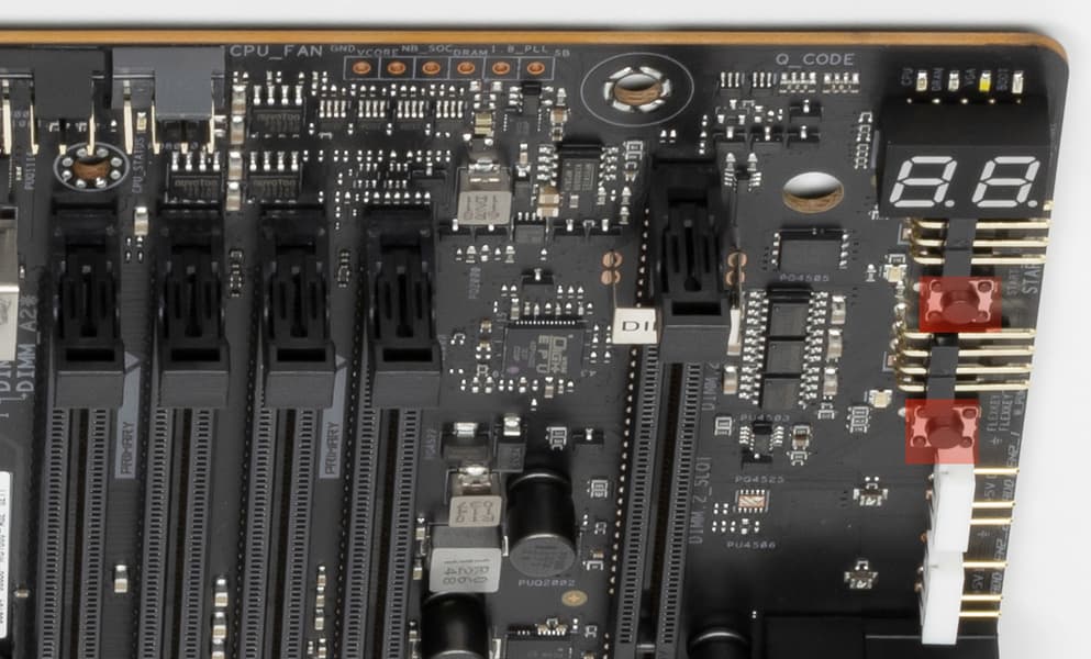 Для питания платы на ней предусмотрены 4 разъема: в дополнение к 24-контактному ATX здесь есть еще два ATX12V (8 контактов), а также 6-контактный PCIe (он требуется для обеспечения быстрой зарядки устройств, подключенных к USB 3.2 Gen2x2 порту).