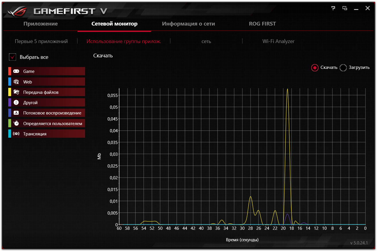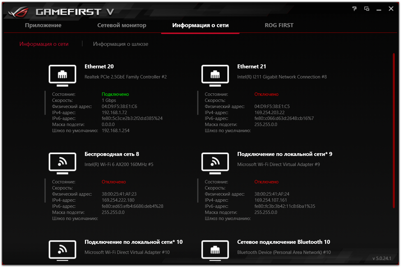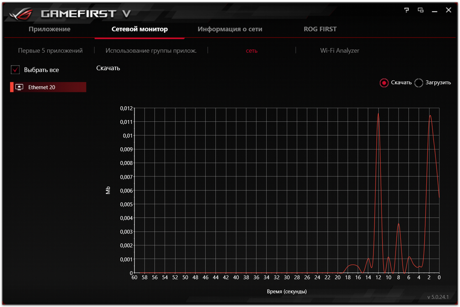 Утилита также осуществляет мониторинг сетевых соединений, загрузки канала и т. п. Собственно, это тоже одна из черт, особенностей серии ROG.