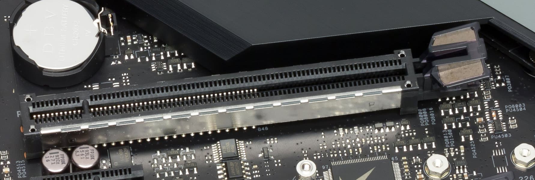 Слоты DIMM не имеют металлизированных защит, что как-то даже меня удивило, ведь материнская плата — из премиального сегмента. Впрочем, есть продукт на ступень выше, возможно там уже есть и армирование слотов памяти (мы его изучим позже).