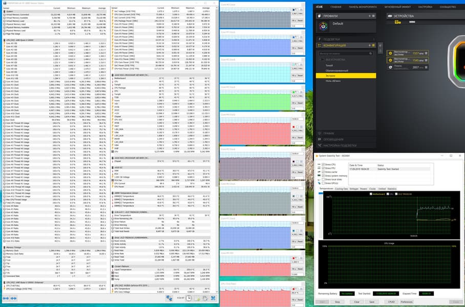 И мы получили фиксированную частоту в 3999 МГц по всем 12 ядрам. Прогоняем снова стресс-тест от AIDA 64.