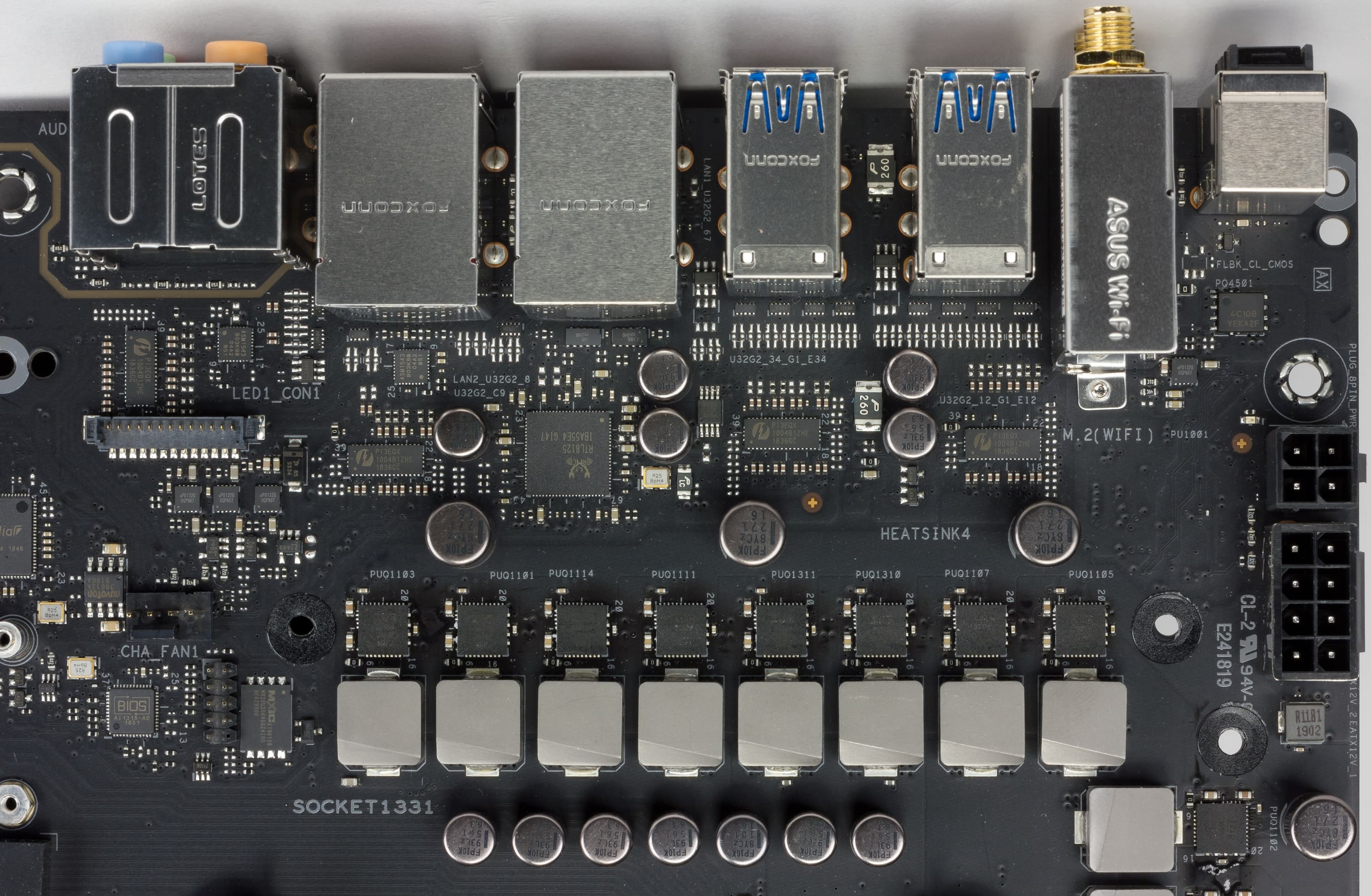 Данная материнская плата относится к премиальному сегменту (причем, материнки по ценам около 30 000 рублей — уже не самые-самые топовые, а пониже, ибо есть платы и за 50-60 тысяч рублей), поэтому имеет просто колоссальное количество портов, слотов и разъемов.