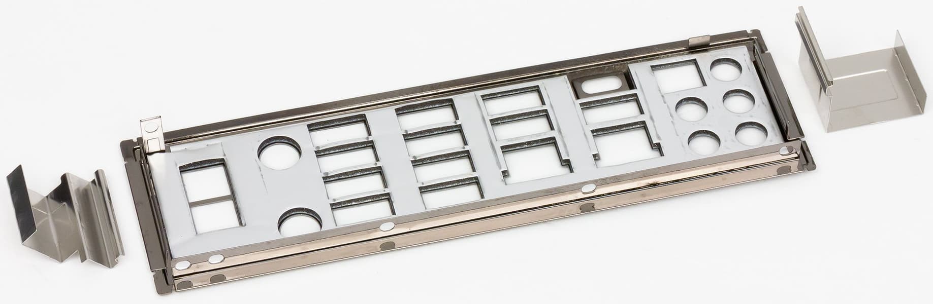 Разумеется, «заглушка» на заднюю панель с разъемами уже смонтирована на самой плате, что обычно наблюдается у дорогих материнских плат.