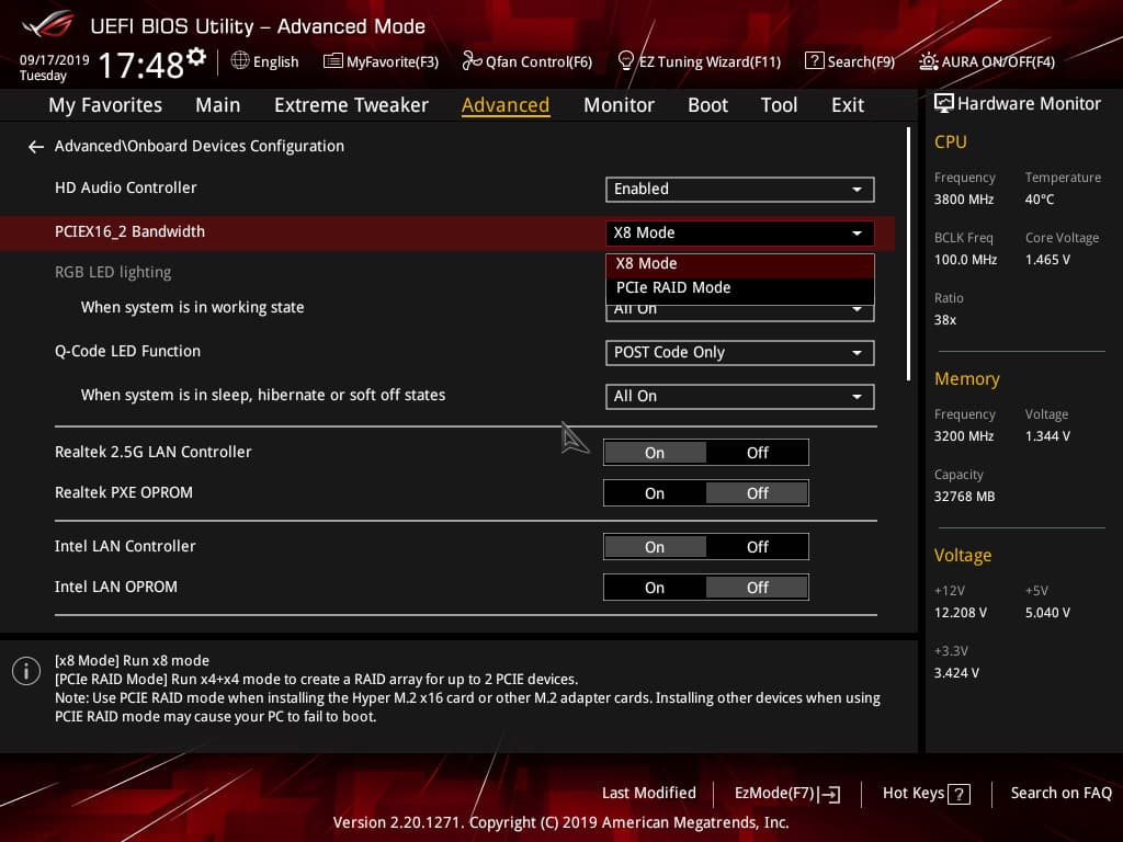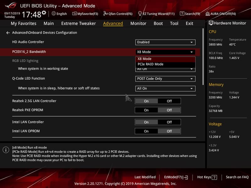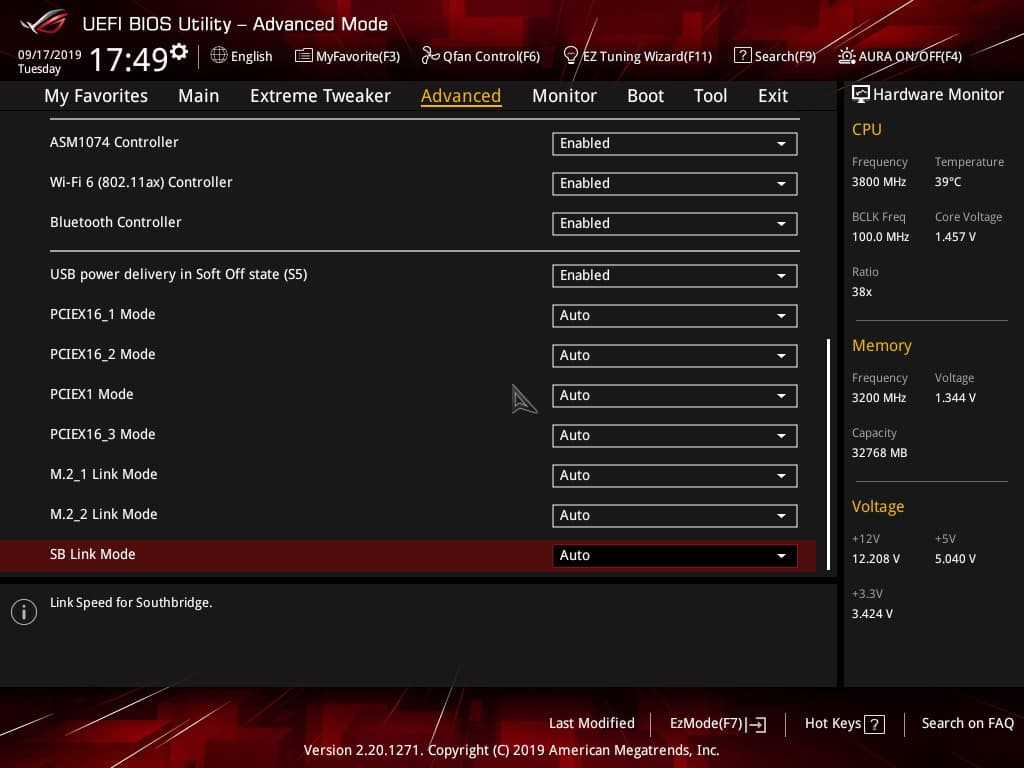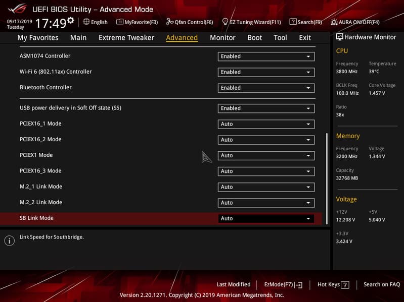 Интересен лишь раздел по конфигурации каждого слота PCI-E, а также M.2. Лишний раз можно убедиться в том, что второй PCI-Ex16 всегда работает в х8 режиме, даже если в него вставлена одиночная видеокарта. Понятно, что если видеокарта — в первом PCI-Ex16, то второй просто отключается (они оба делят 16 линий от CPU). Также можно отключить ASM1074, и 4 USB-порта 3.2 Gen1 (на задней панели синего цвета) отключатся. Правда не понимаю, зачем и кому это может потребоваться: все равно ресурсов на все и вся хватает.