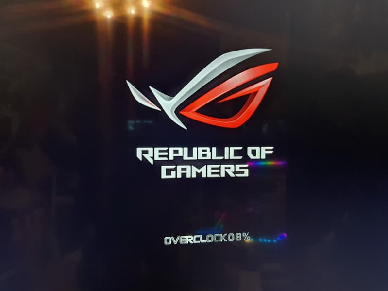В процессе настройки ПК перегружался несколько раз, при этом на начальном логотипе демонстрации UEFI BIOS уже появилось обозначение оверклокинга.