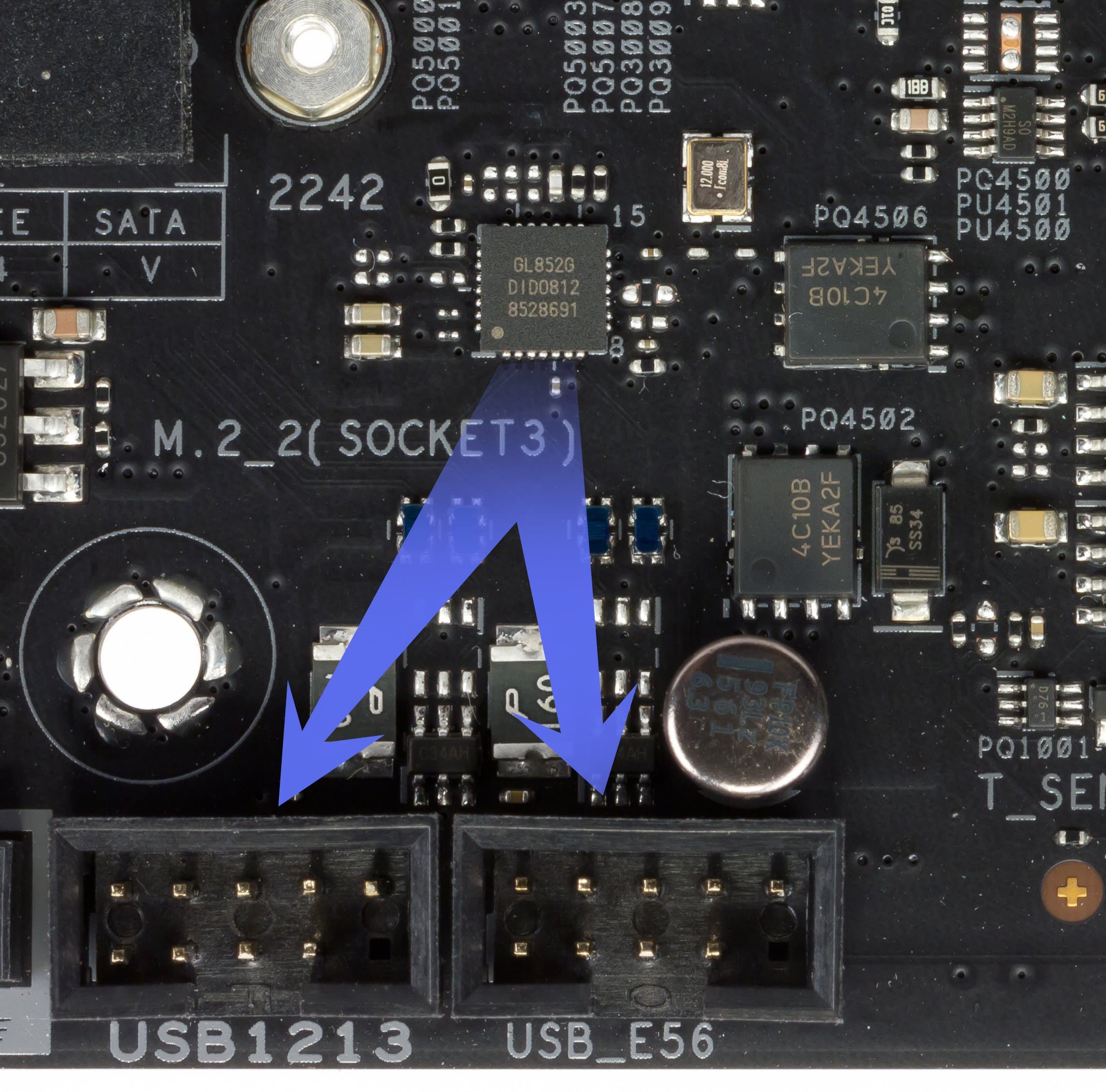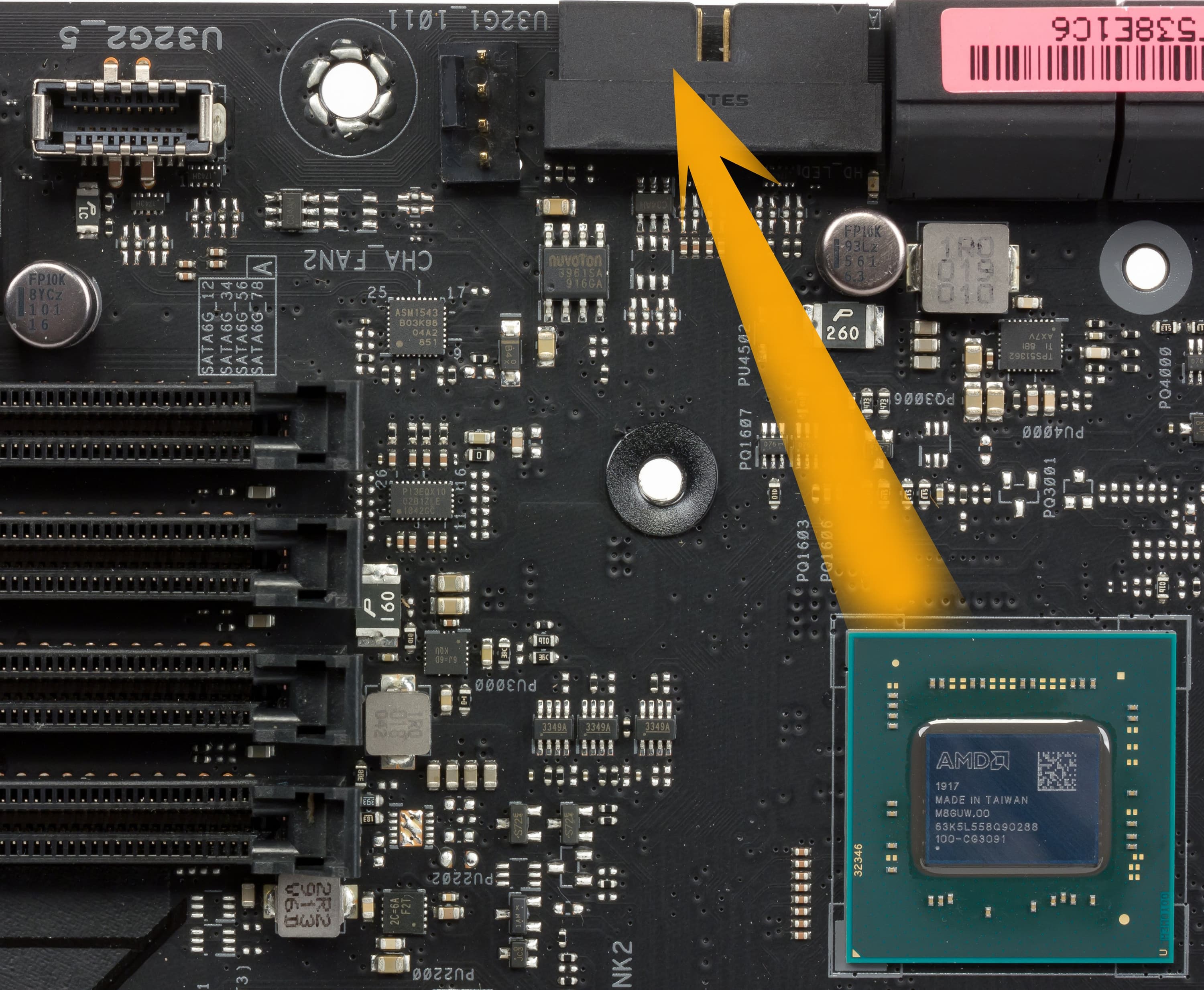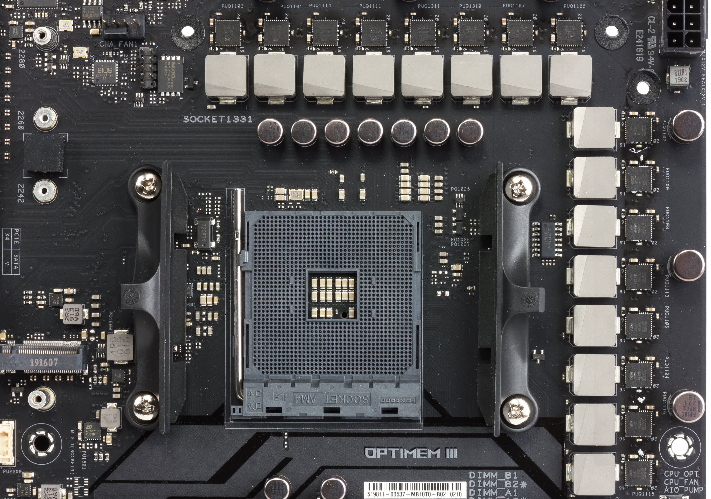 Все 8 портов SATA600 реализованы через чипсет X570 (чувствуете, что пошли в ход те самые резервные 20 линий PCI-E?).
