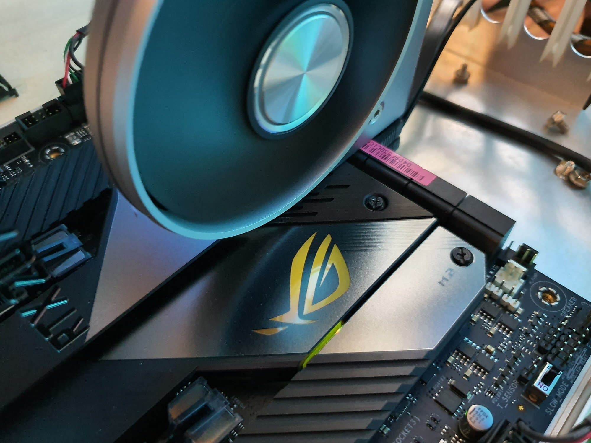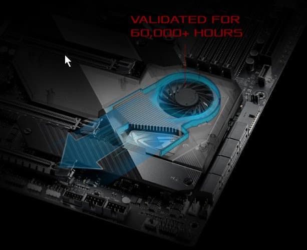 Имеется и минус: расположение чипсетного вентилятора прямо под кулером массивной видеокарты, что может затруднить попадание к нему воздуха и потенциально вызвать повышение шума. Однако при тестировании дискомфорт от работы кулера отмечен не был (правда, в плату была установлена относительно небольшая видеокарта Nvidia GeForce RTX 2070 Super).