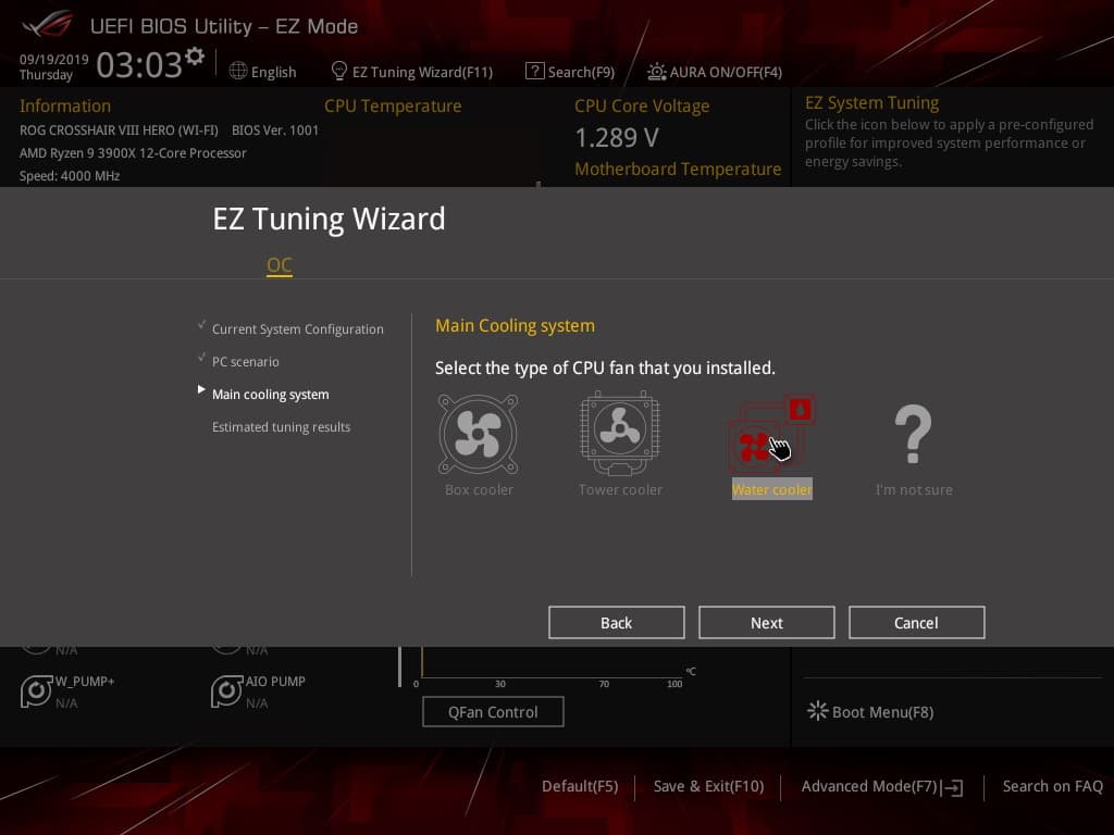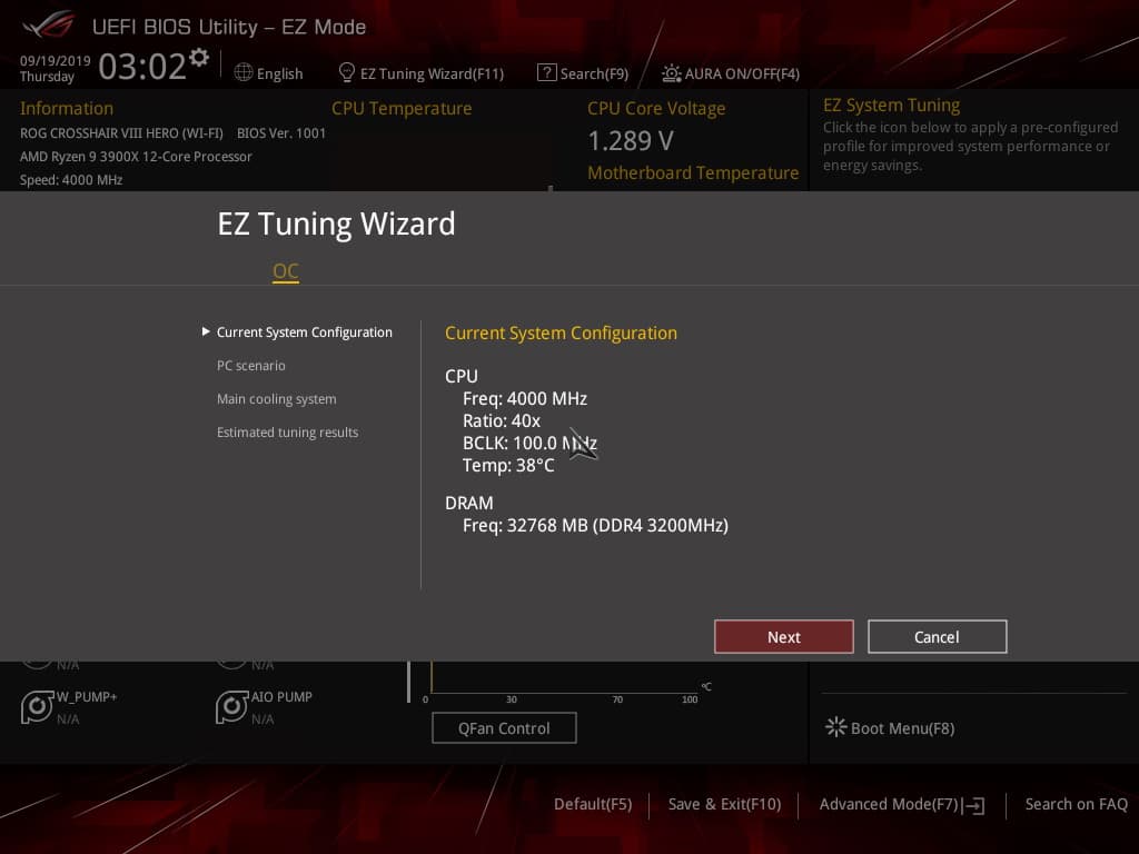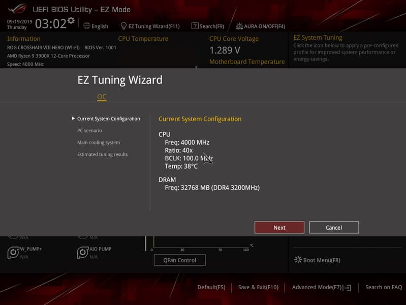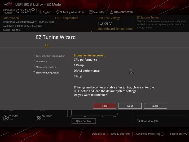 По умолчанию система предлагает «простое» меню для тонкой настройки, но можно нажать F7 и попасть в «продвинутое» меню. Обратите внимание на пункт сверху справа: EZ System Tuning: в следующем разделе его опробую.