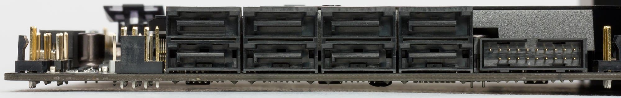 Всего у платы 8 разъемов Serial ATA 6 Гбит/с + 2 слота для накопителей в форм-факторе M.2.