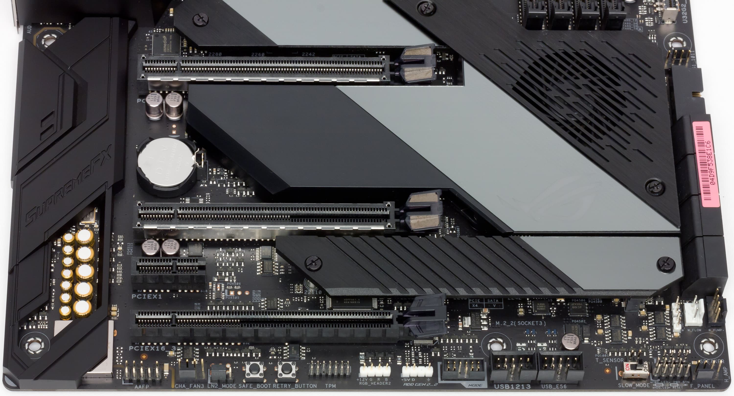 Как обычно в стиле ROG, имеется набор технологий, помогающих оверклокерам. Прежде всего, кнопка возврата в настройки BIOS в случае неудачного старта ПК из-за нереализуемых настроек разгона — при этом все они останутся (не будут сброшены). Затем кнопка повторной попытки запуска системы при тех же настройках.
