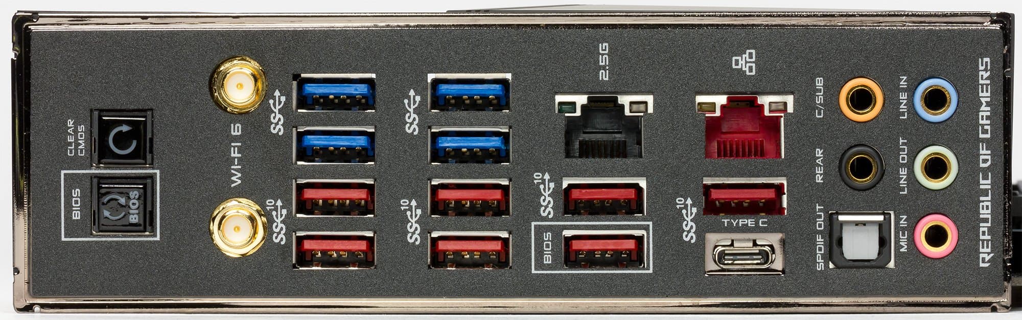 | Разъемы на задней панели | 1 × USB 3.2 Gen2 (Type-C) 7 × USB 3.2 Gen2 (Type-A) 4 × USB 3.2 Gen1 (Type-A) 2 × RJ-45 2 антенных разъема 5 аудиоразъемов типа миниджек 1 × S/PDIF (оптический, выход) 1 кнопка прошивки BIOS - Flashback 1 кнопка сброса CMOS |