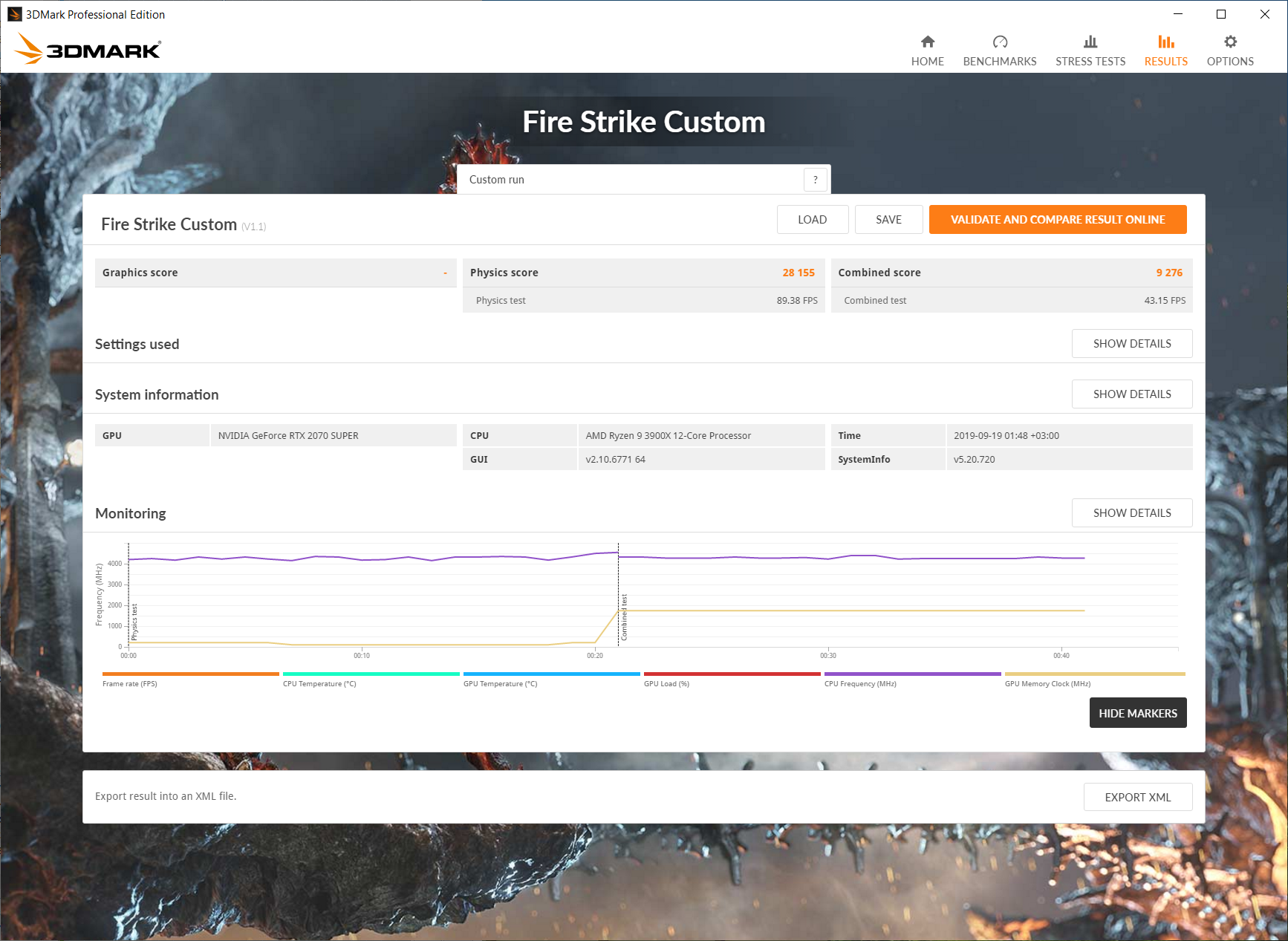 - 3DMark Fire Strike Physics / Combined CPU benchmark — 28155 / 9276