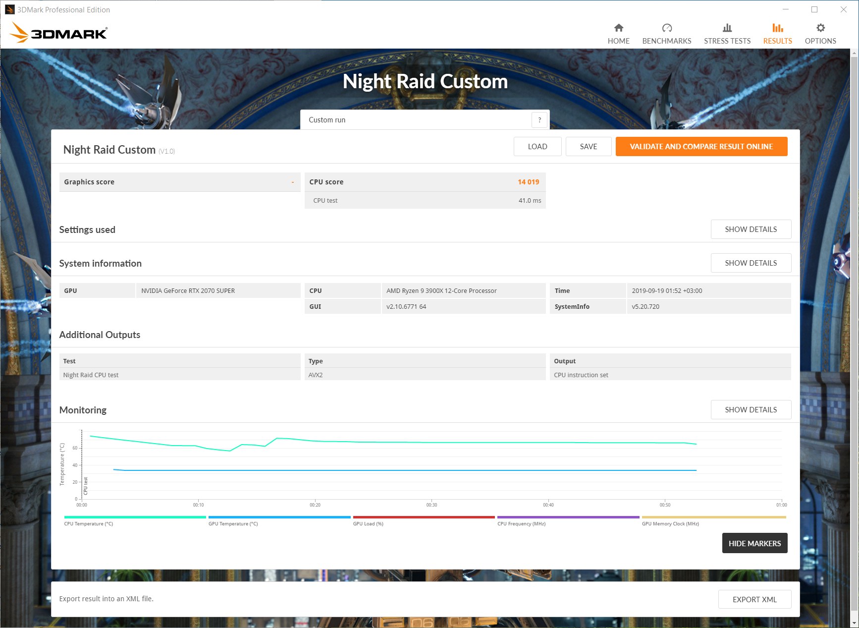 - 3DMark Night Raid CPU benchmark — 14019