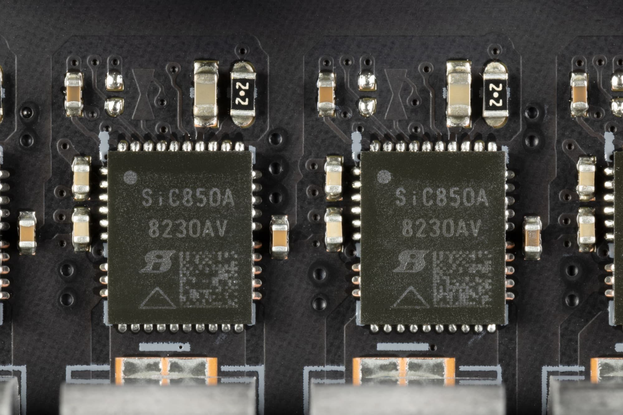 Каждый канал фазы VCore и встроенной графики имеет суперферритовый дроссель и транзисторную сборку SiC850A от Vishay (до 110A).