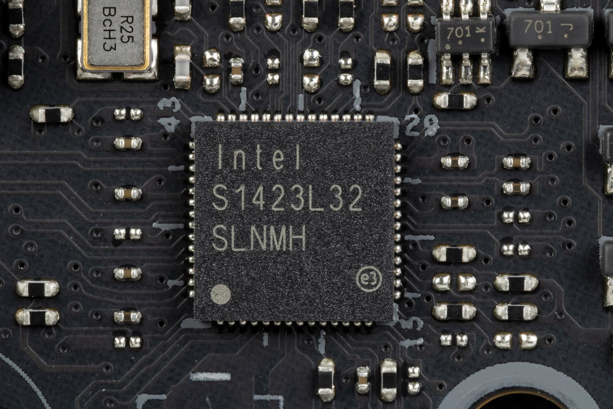 Материнская плата оснащена еще одним мощным инструментом связи — Intel Thunderbolt 4. Плата комплектуется соответствующим контроллером на основе Intel JHL8540, который распаян на материнской плате.