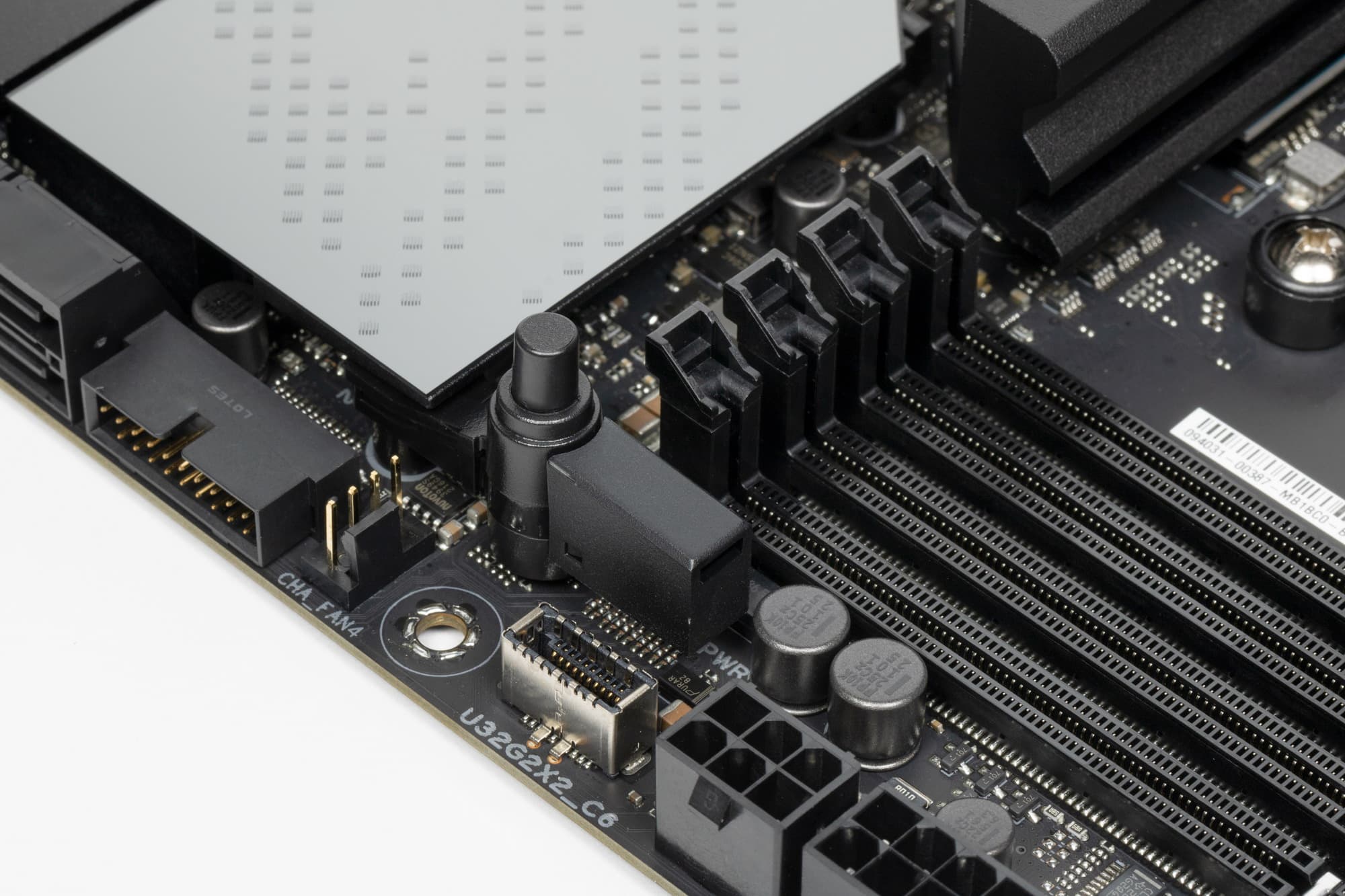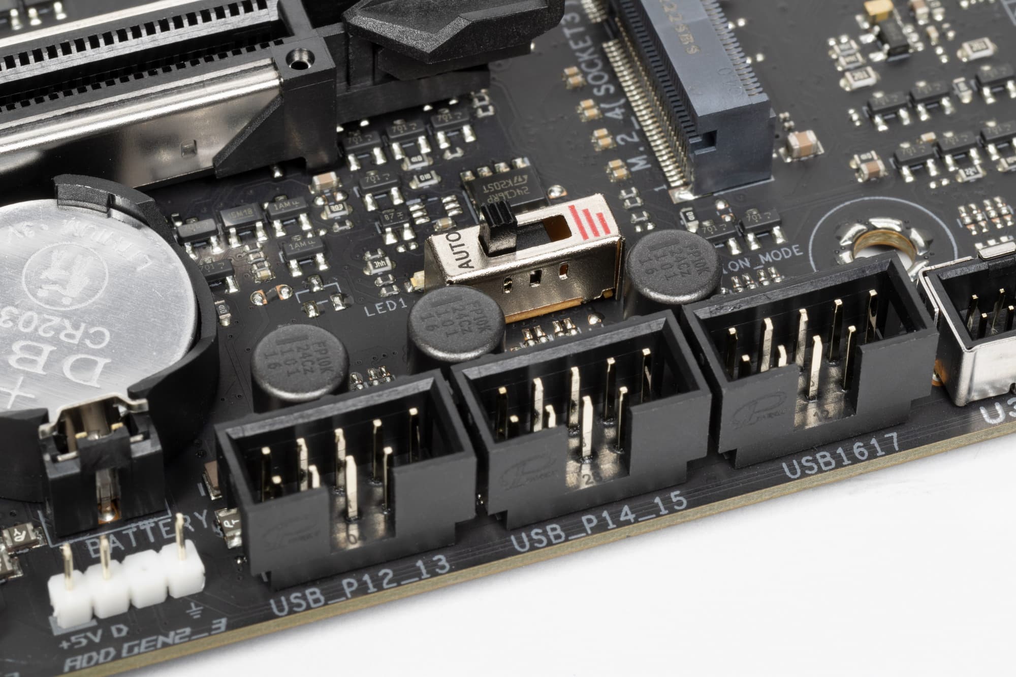 А порт USB 3.2 Gen2x2 в виде внутреннего Type-C оснащен еще и дополнительным питанием через 6-контактный разъем PCIe, дающий устойчивый вольтаж, способный обеспечить быструю зарядку мобильных гаджетов через них.