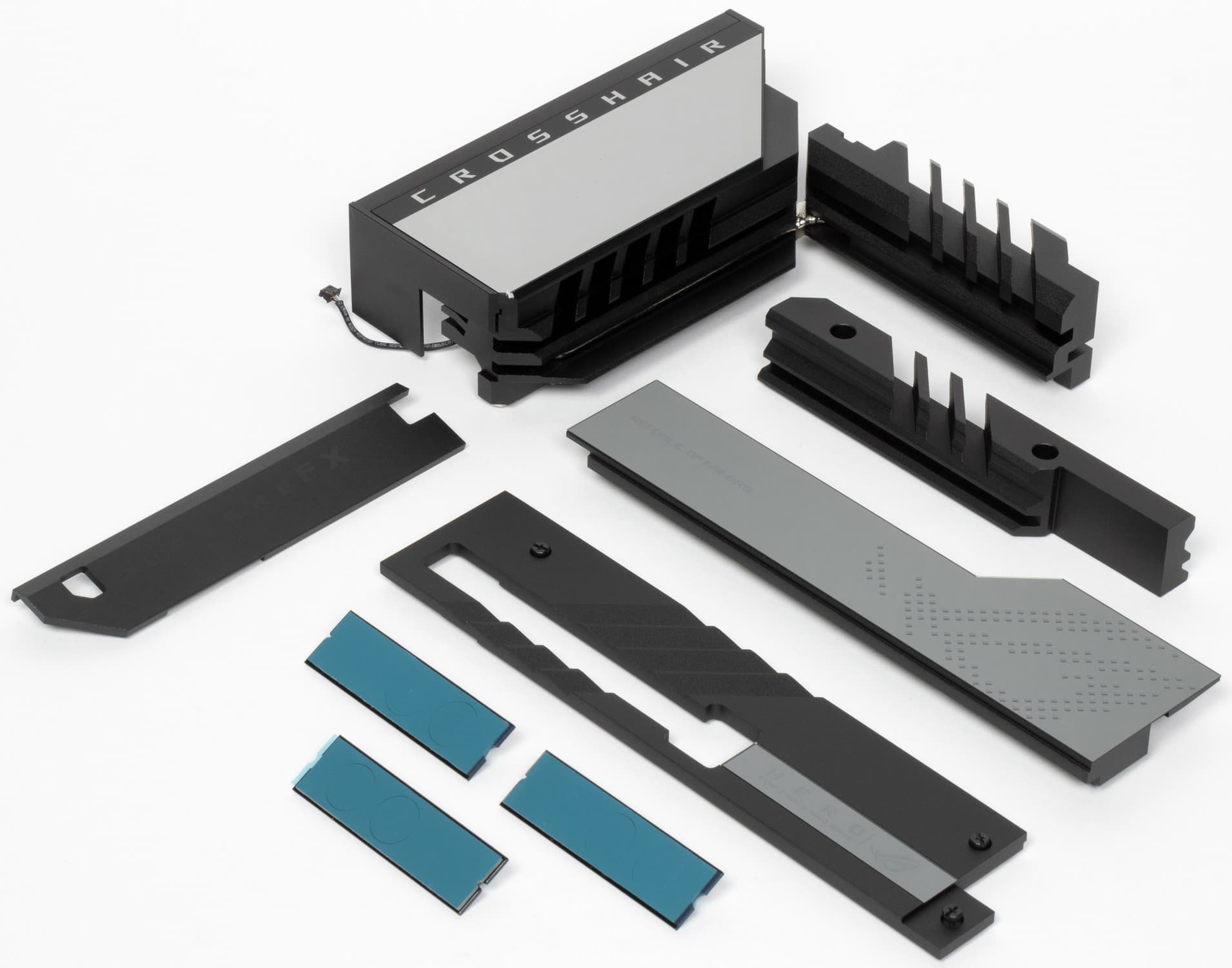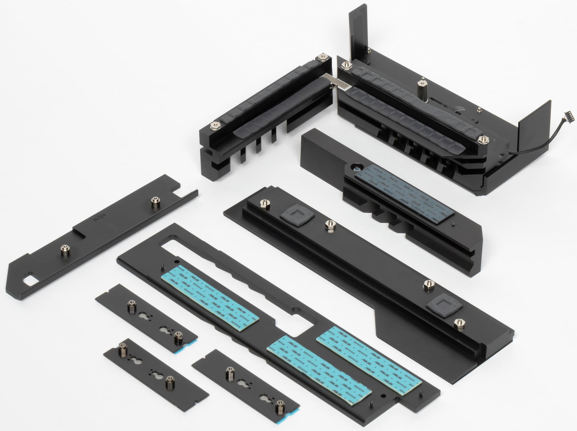Как я уже упоминал ранее, M.2 слоты также имеют радиаторы: у верхнего — свой персональный радиатор, у трех остальных — общий.