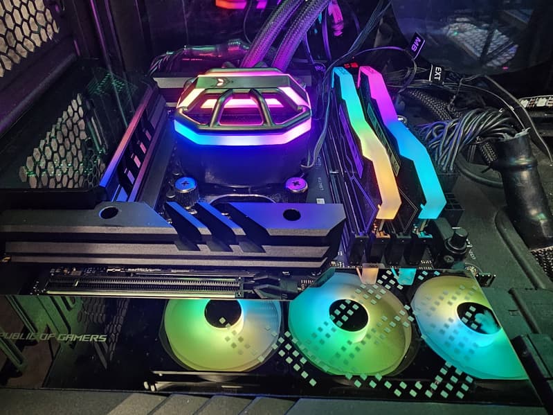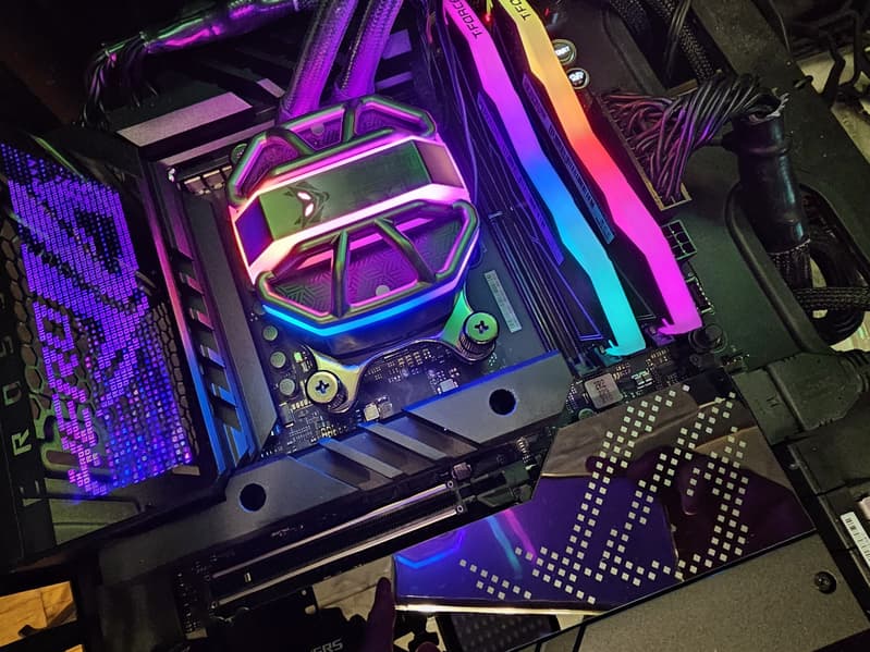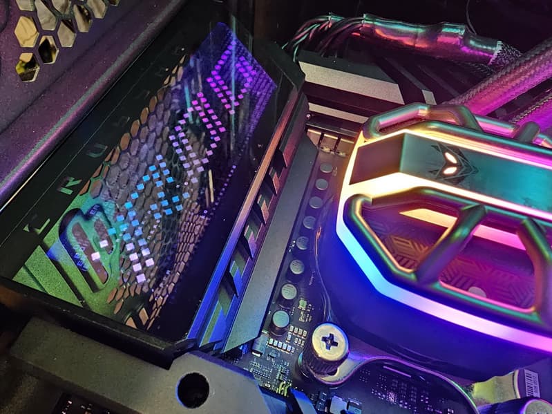 Радиатор VRM, идущий вдоль заднего блока портов, имеет кожух, прикрывающий тот самый блок, оснащенный подсветкой.