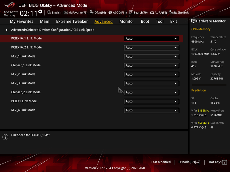 Надо особо отметить, что в случае установки видеокарты в PCIe x16_2 при пустом PCIe x16_1, оба они все равно получают по 8 линий. Мы помним, что все эти линии PCIe версии 5.0.