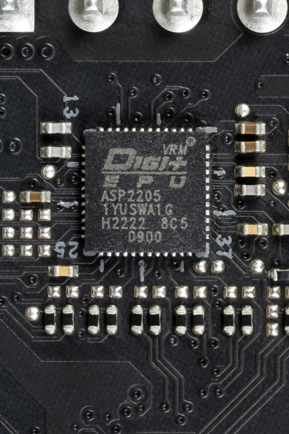 Управляет обоими наборами фаз (18+2) фирменный ШИМ-контроллер Digi+ ASP2205.