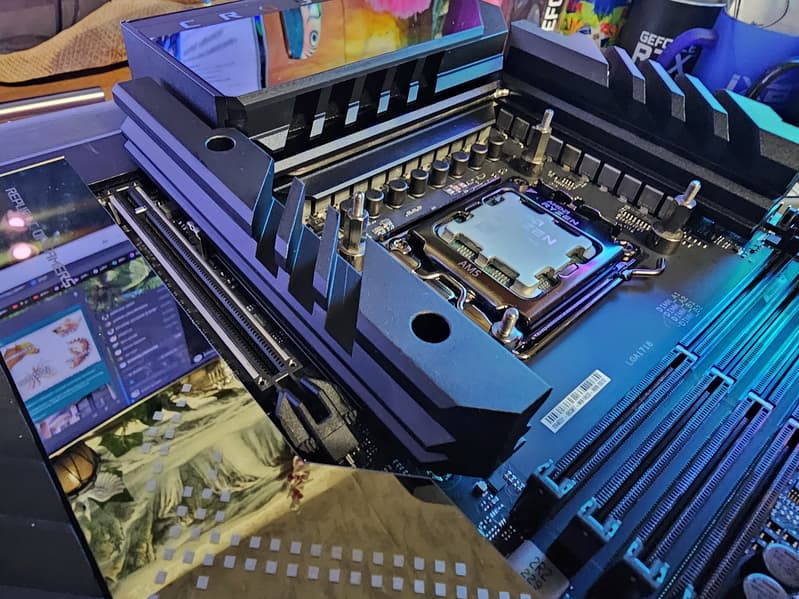 Сетевые возможности прекрасные: быстрый проводной контроллер 2,5 Гбит/с и один самый современный беспроводной. Ну а поддержка Thunderbolt 4 позволяет передавать данные на скорости до 40 Гбит/с самым разным устройствам. В числе плюсов платы можно упомянуть неплохую подсветку, включая широкие возможности для подключения дополнительных RGB-устройств. Отметим и улучшенный аудиокодек Realtek ALC4082.