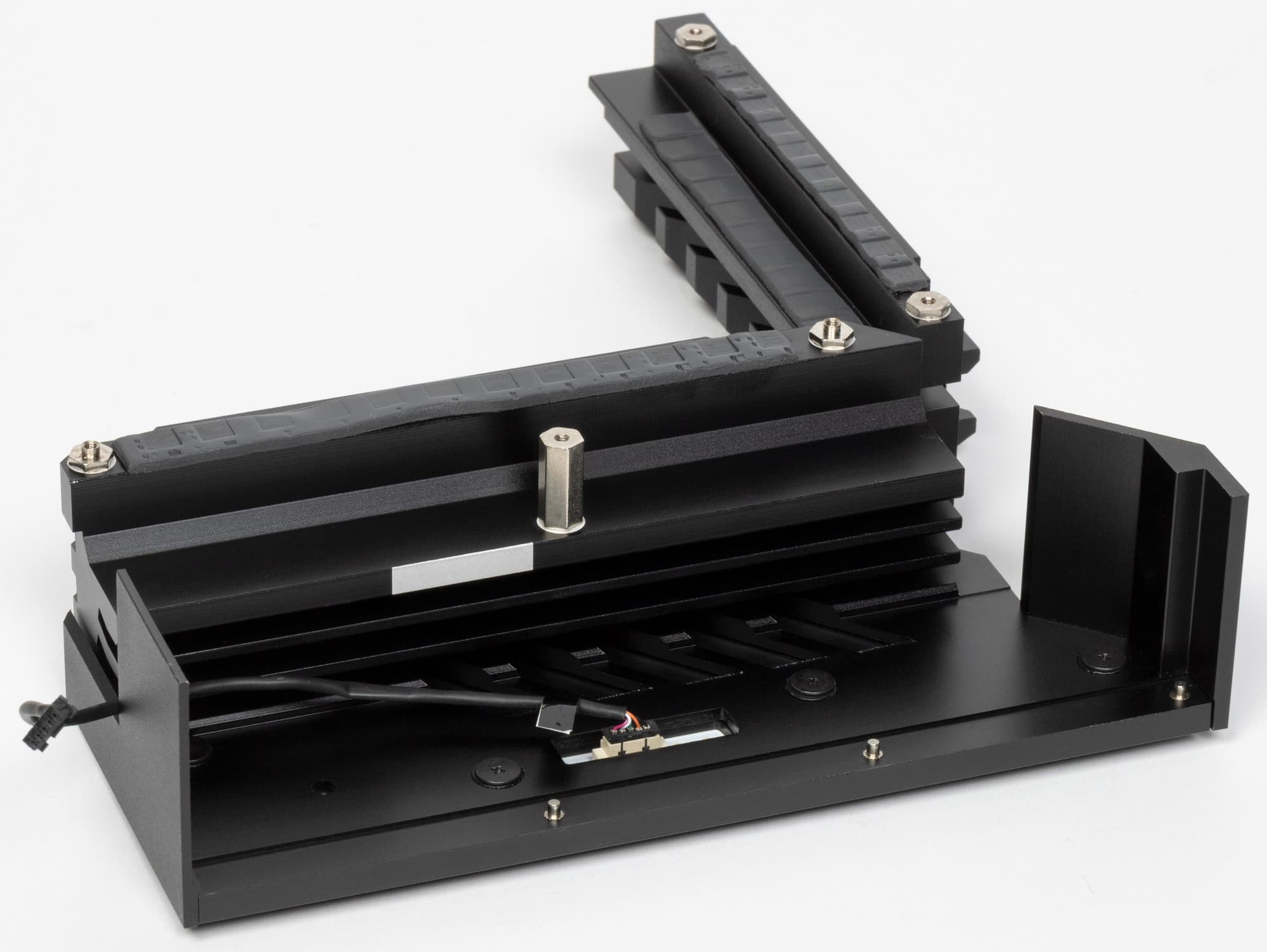 Я уже ранее говорил о такого рода подставке под видеокарты. С одной стороны просто и сердито, с другой стороны, максимальная высота не очень велика: годится лишь для установки в корпуса с дном (или кожухом) сразу ниже материнской платы. Сувенирный брелок может играть роль как, собственно, брелка, так и стяжки на «липучке».