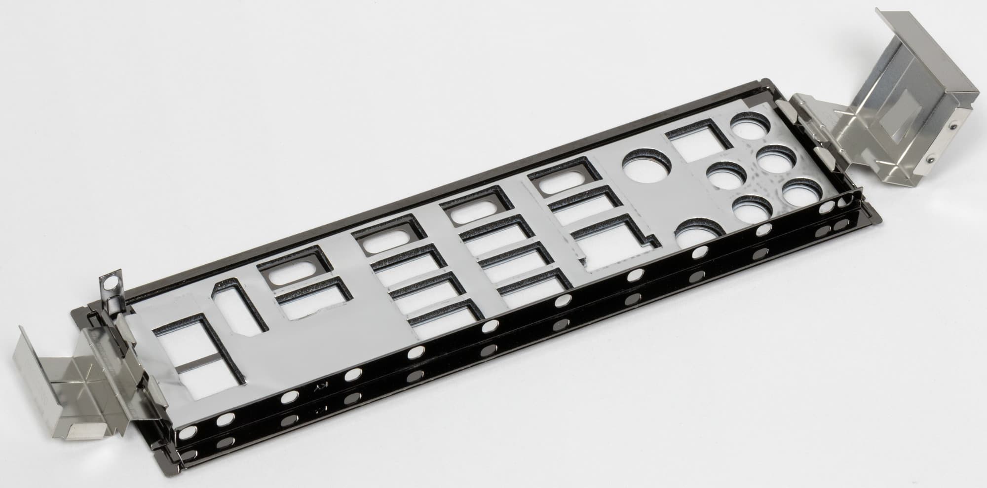 Два первых («процессорных») слота PCIe x16 имеют металлическое армирование из нержавеющей стали, которое увеличивает их надежность (что может быть важным в случае довольно частой смены видеокарт, но что более важно: такой слот легче выдержит нагрузку на изгиб в случае установки очень тяжелой видеокарты топового уровня. Кроме того, такая защита предохраняет слоты от электромагнитных помех.
