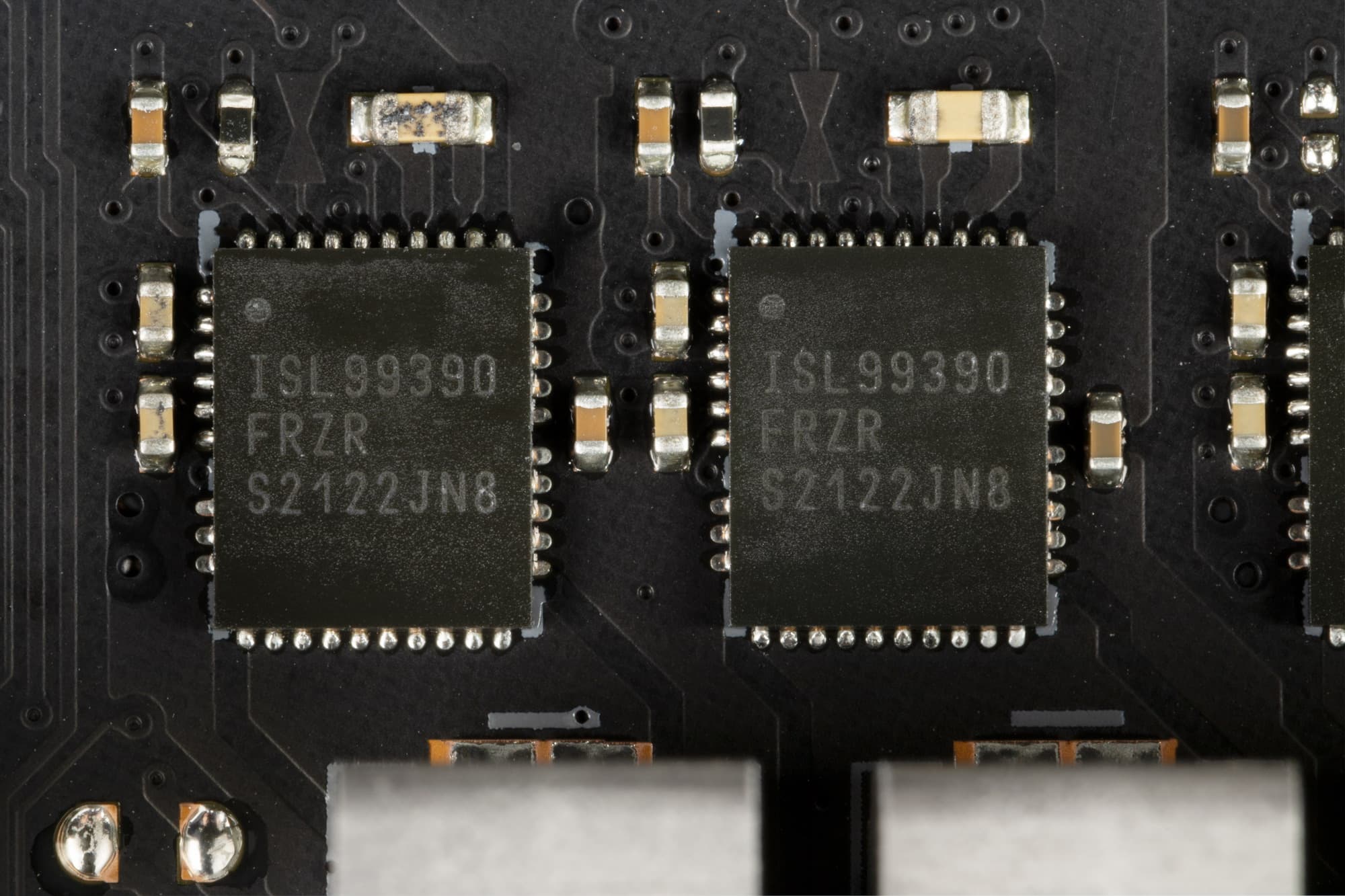2 фазы питания SoC образуют также суперферритовые дроссели и сборки ISL99390 от Renesas (ex-Intersil) на 90 А.