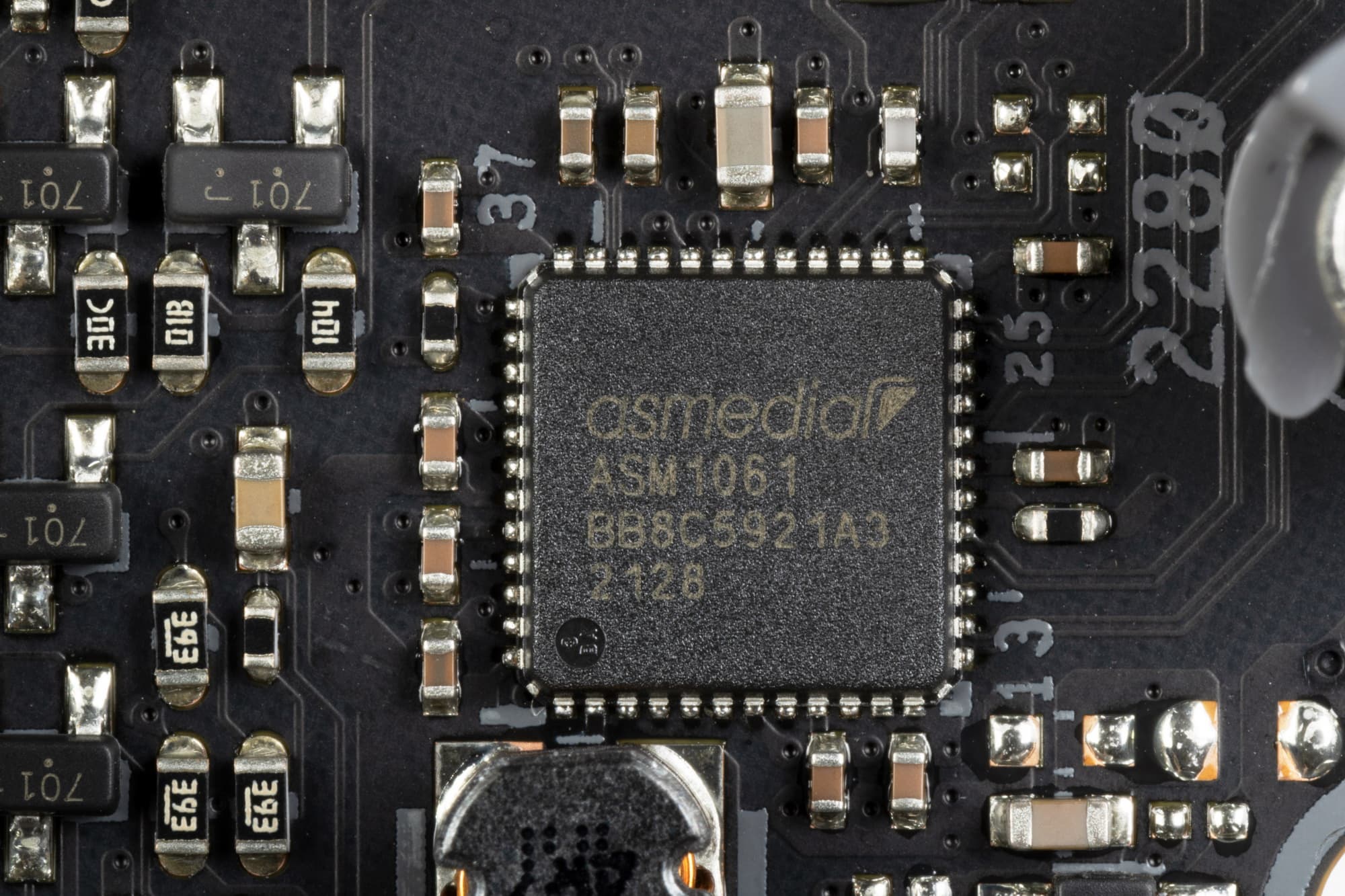 - ASMedia ASM1061 (SATA 5,6 хаб) (1 линия PCIe 4.0);