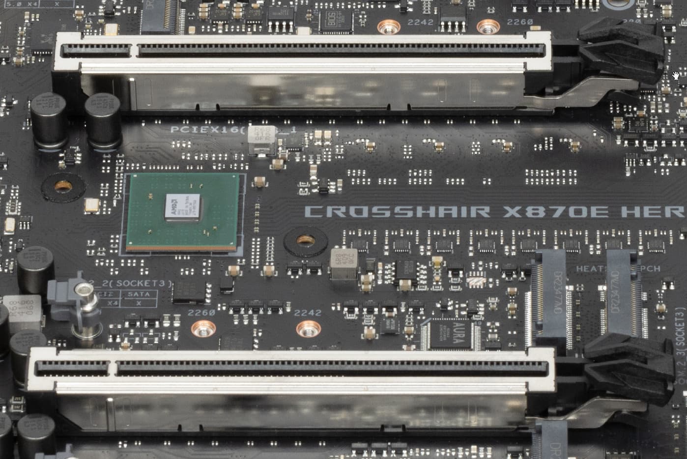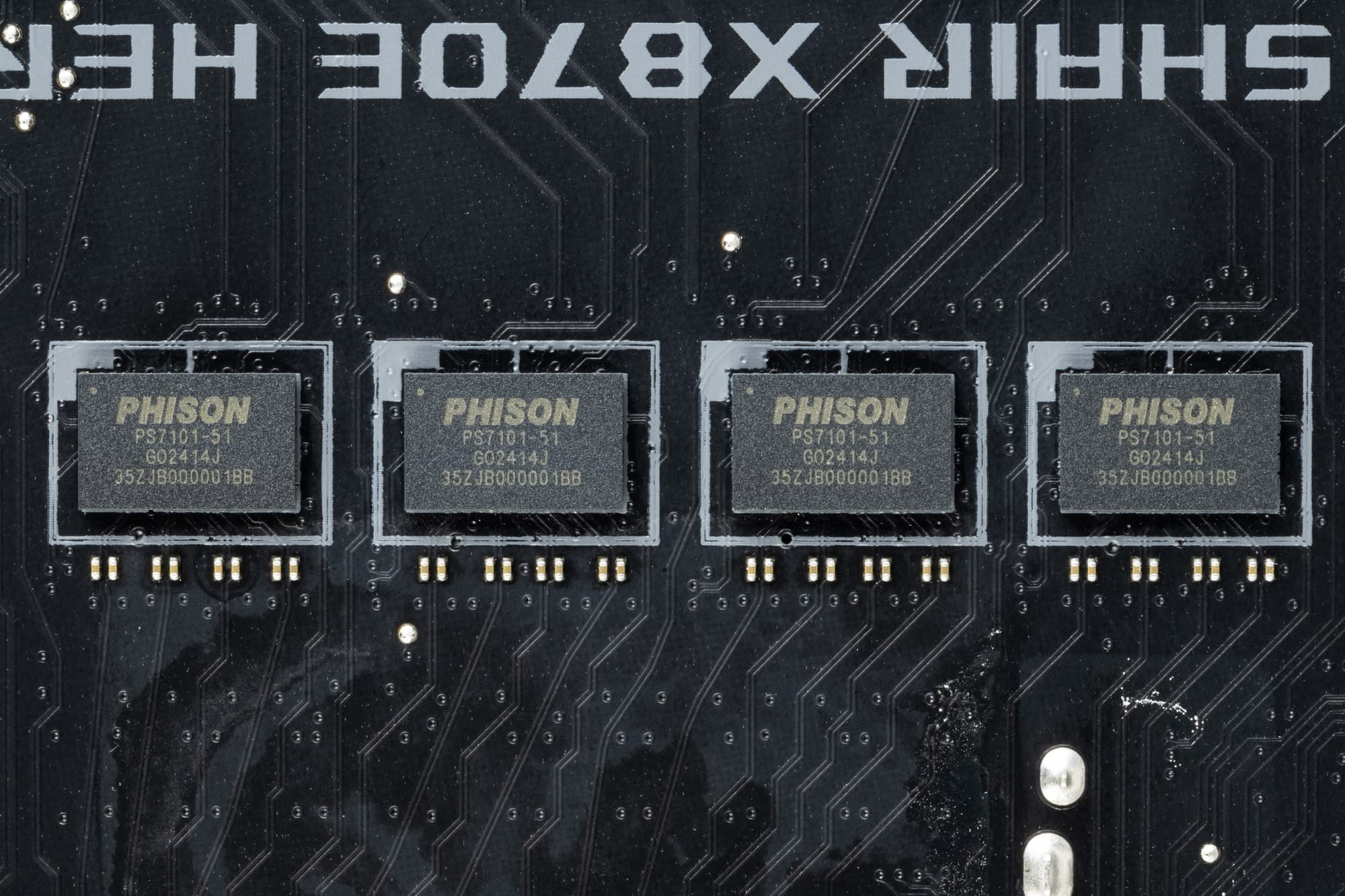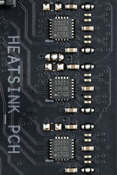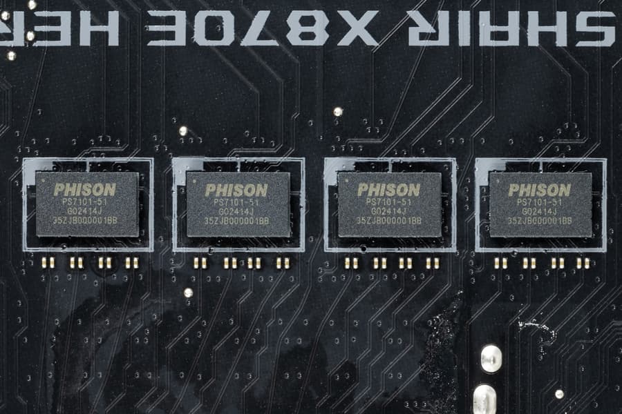 Для более стабильной работы на матплате имеются усилители (ре-драйверы) сигнала PCIe 5.0 от Phison.
