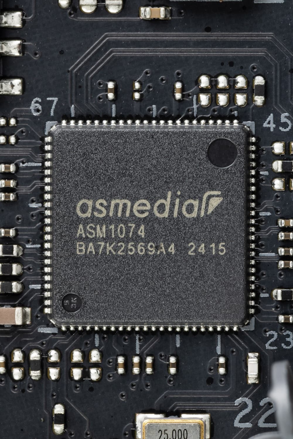 Еще 1 контроллер использует USB 3.2 Gen2 от центрального процессора: ASMedia ASM1074 (хаб 4 USB 3.2 Gen1 на 4 внутренних порта ) (1 линия USB 3.2 Gen2).