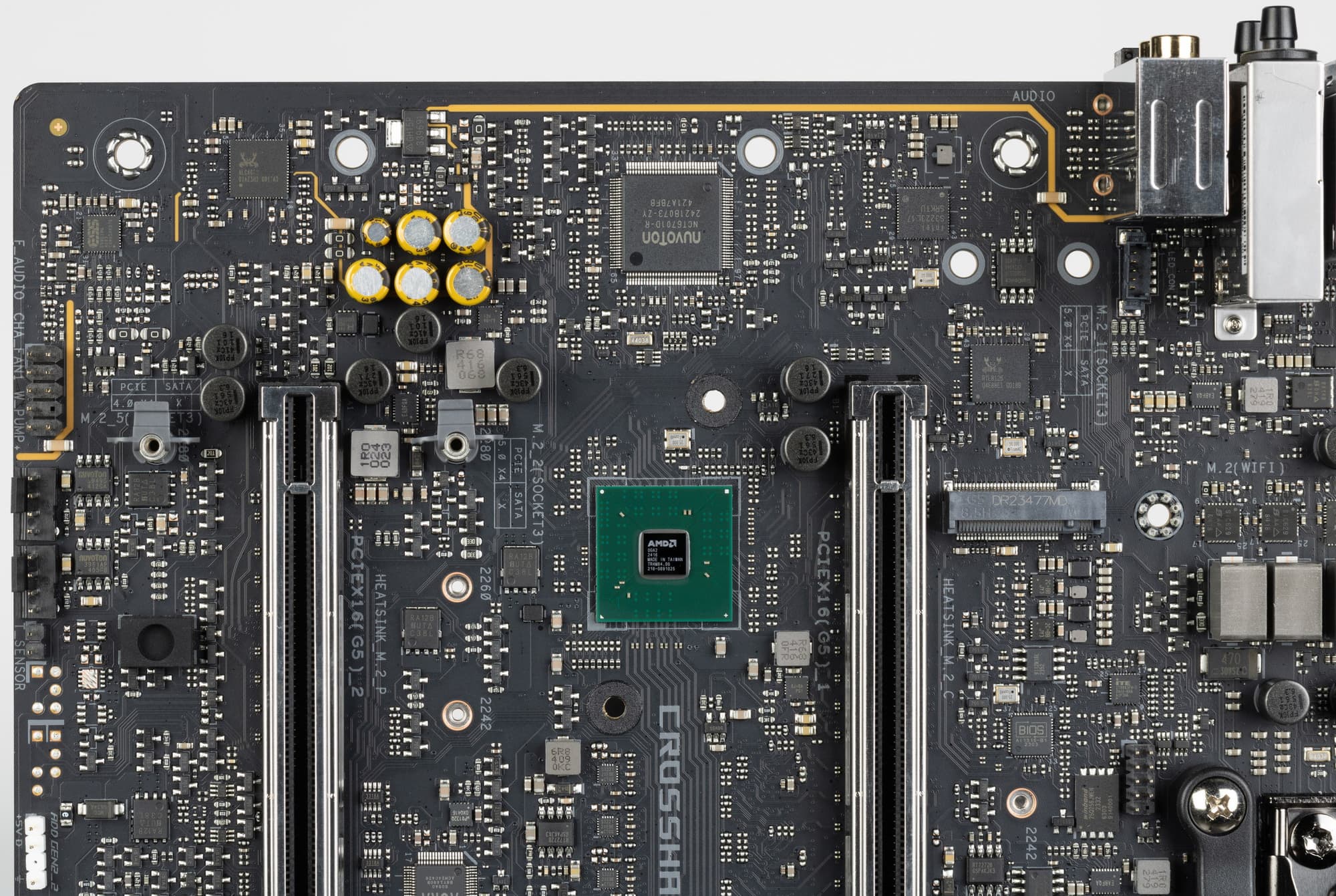 Как я уже упоминал ранее, M.2 слоты также имеют радиаторы: у верхнего — свой персональный радиатор, у остальных — общий.