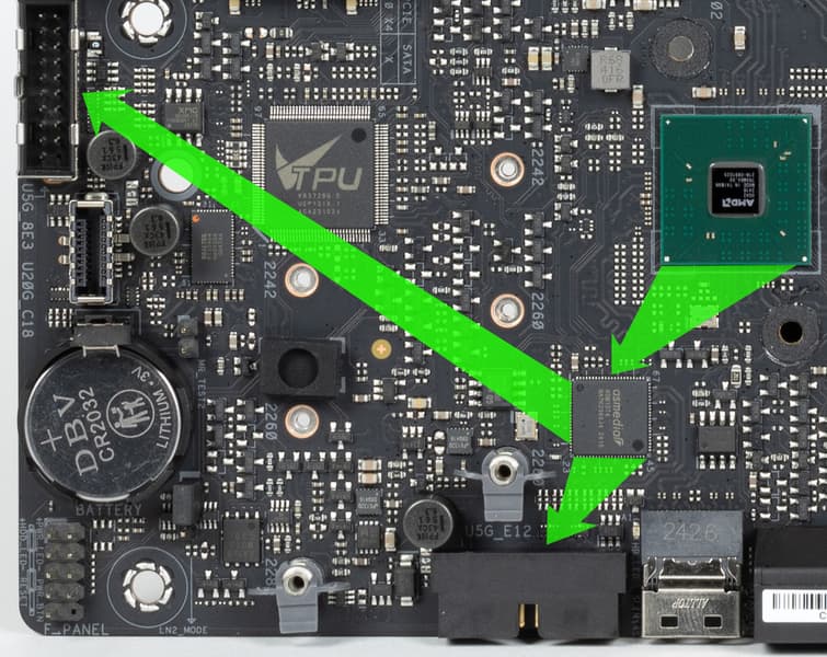 Также и порты USB 3.2 Gen2 на задней панели оснащены ре-драйверами.
