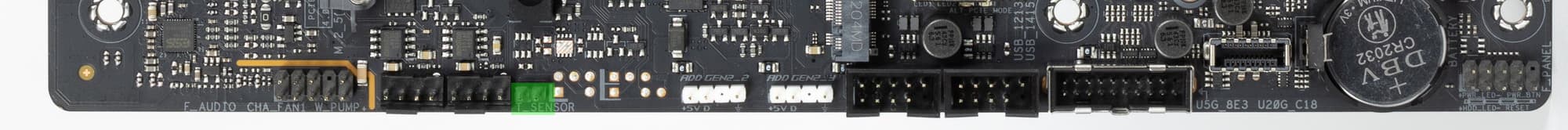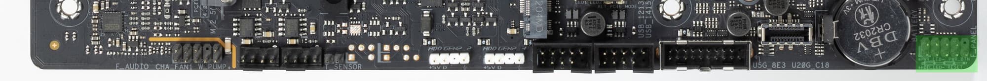 Один из USB портов 3.2 Gen2x2 (что выводится на переднюю панель корпуса в формате Type-C) позволяет выдавать вольтаж, способный обеспечить быструю зарядку мобильных гаджетов (до 60 Вт). Для этого требуется подключить дополнительное питание к 8-контактному разъему PCIe около порта (на схеме выше отмечен голубым). Второй USB 3.2 Gen2x2 оснащен ре-драйвером для простой зарядки гаджетов.