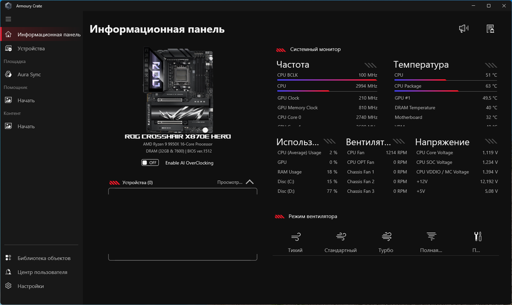 Для энтузиастов и любителей всего самого производительного у платы имеется огромный арсенал настроек в BIOS Setup и возможность использовать фирменные утилиты под Windows, в том числе с интегрированными моделями ИИ для определения самого производительного режима работы ПК.