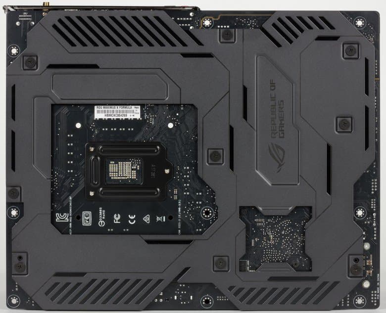 Одна из отличительных особенностей платы Asus ROG Maximus X Formula — наличие защитного кожуха на текстолите сверху и металлической пластины снизу.