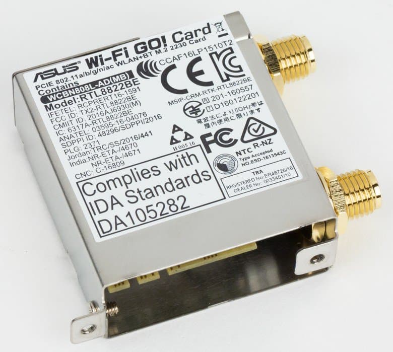 Кроме того, на плате имеется специальный разъем M.2, в который установлен Wi-Fi-модуль Asus Wi-Fi Go! с поддержкой стандартов 802.11a/b/g/n/ac и Bluetooth 4.2.