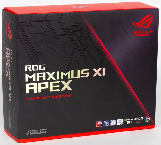 Плата Asus ROG Maximus XI Apex поставляется в средней по размере коробке, оформленной в стандартном для серии ROG стиле.