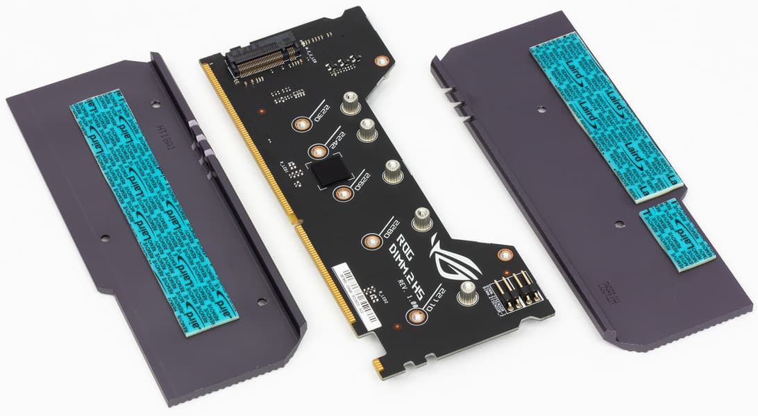 Для накопителей, устанавливаемых в разъемы M.2 на карте ROG DIMM.2, предусмотрены радиаторы.