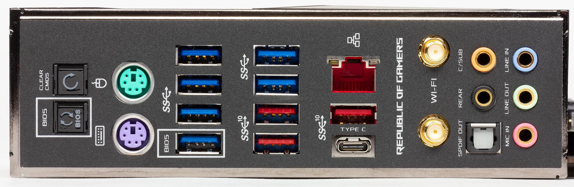 Шесть портов USB 3.0 и четыре порта USB 3.1 выведены на заднюю панель платы. Среди портов USB 3.1 три имеют разъем Type-A, а один — разъем Type-C.