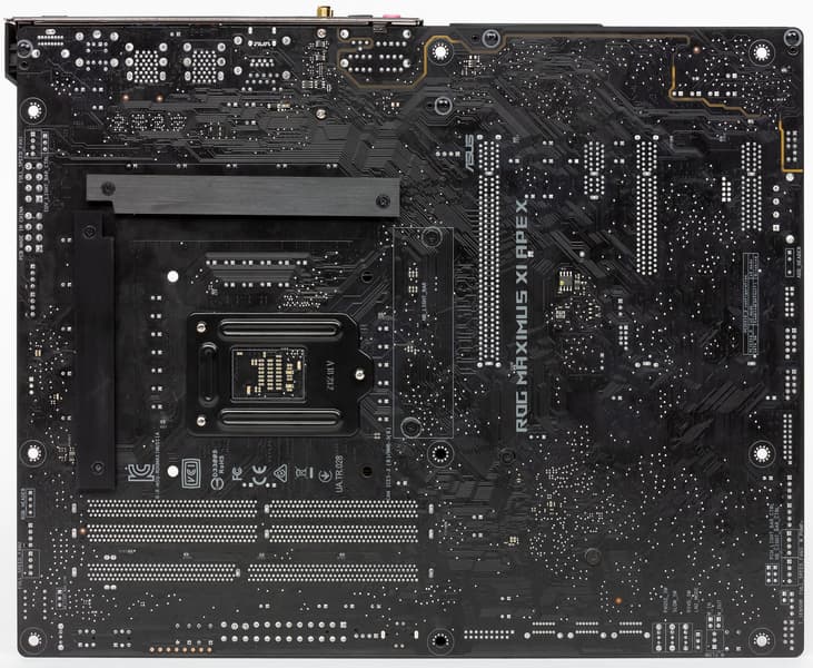 Плата Asus ROG Maximus XI Apex выполнена в форм-факторе ATX (305×244 мм), для ее монтажа в корпус предусмотрено девять стандартных отверстий.
