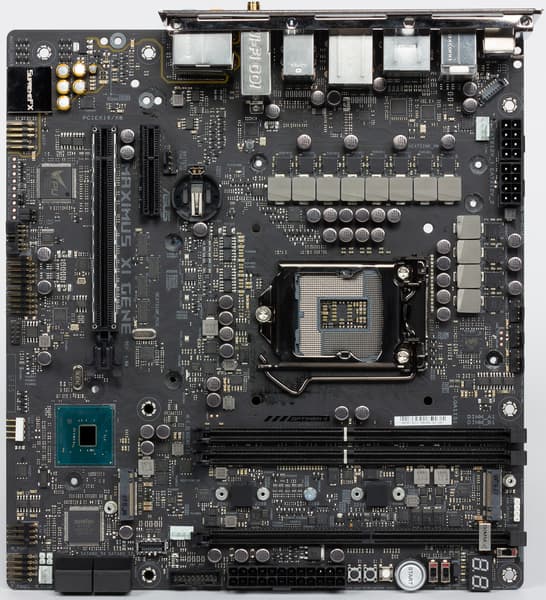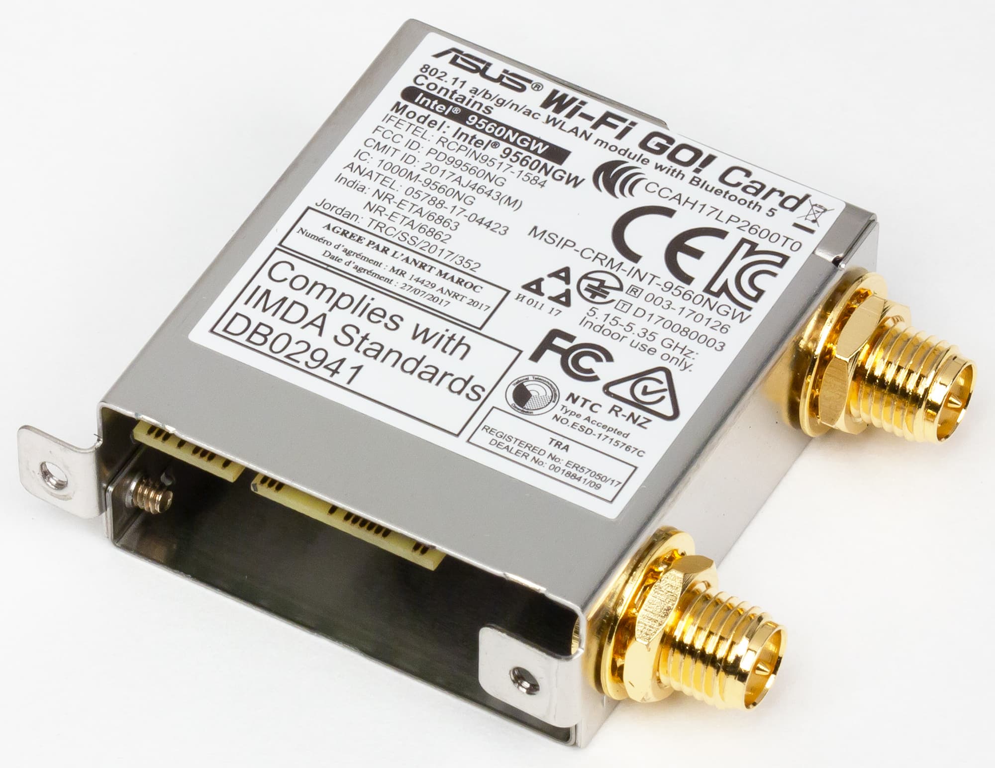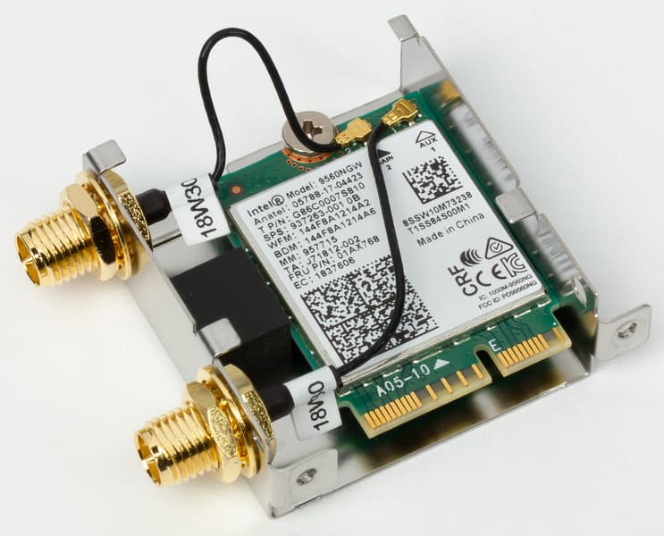 Кроме того, в специальный разъем M.2 (ключ E-типа) на плате установлен Wi-Fi-контроллер Intel Wireless-AC 9560, который использует чипсетный интерфейс CNVi. Напомним, что интерфейс CNVi (Connectivity Integration) обеспечивает работу соединений Wi-Fi (802.11ac, до 1733 Мбит/с) и Bluetooth 5.0. Однако контроллер CNVi — это не полноценный сетевой контроллер, а MAC-контроллер. Для создания полноценного контроллера нужна еще карта — например, Intel Wireless-AC 9560, как в данном случае, — которая поддерживает интерфейс CNVi.