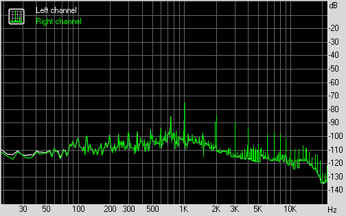 Для тестирования выходного звукового тракта, предназначенного для подключения наушников или внешней акустики, мы использовали внешнюю звуковую карту Creative E-MU 0204 USB в сочетании с утилитой RightMark Audio Analyzer 6.3.0. Тестирование проводилось для режима стерео, 24-бит/44,1 кГц. По результатам тестирования аудиотракт на плате ROG Maximus XI Gene получил оценку «Хорошо».