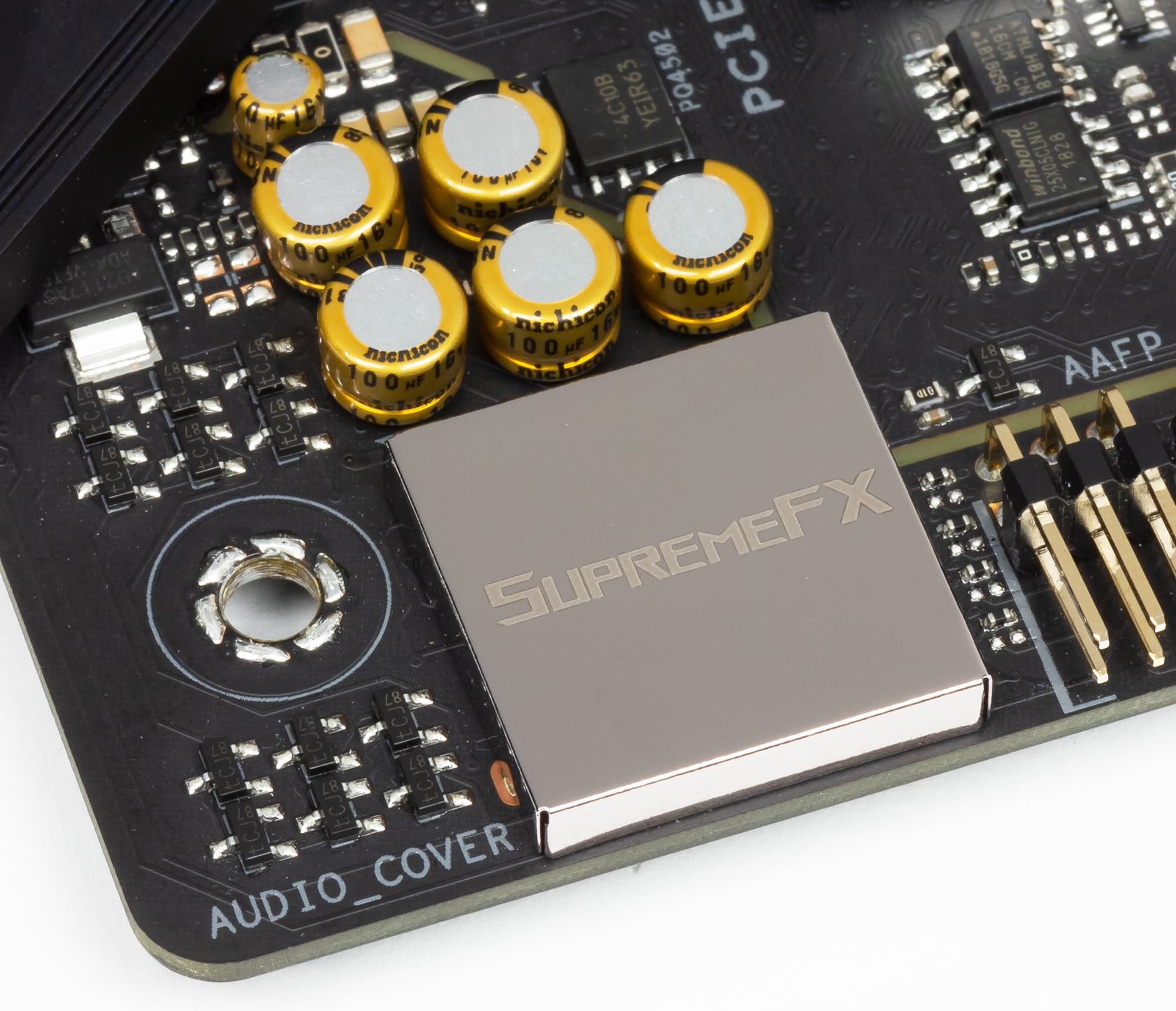 Аудиоподсистема платы ROG Maximus XI Gene, как и всех плат серии ROG Maximus XI, основана на кодеке Realtek ALC1220. Все элементы аудиотракта изолированы на уровне слоев PCB от прочих компонентов платы и выделены в отдельную зону.