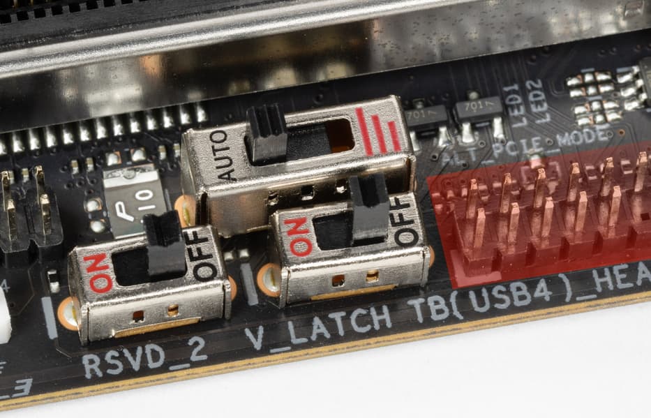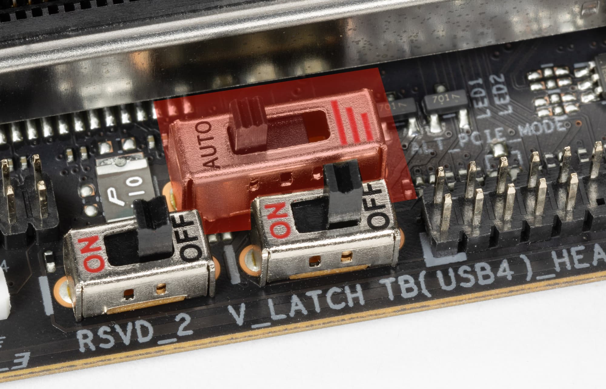 Как видим, перераспределение линий PCIe 5.0 между слотами у этой материнки имеется, поэтому востребованы мультиплексоры Lerain.
