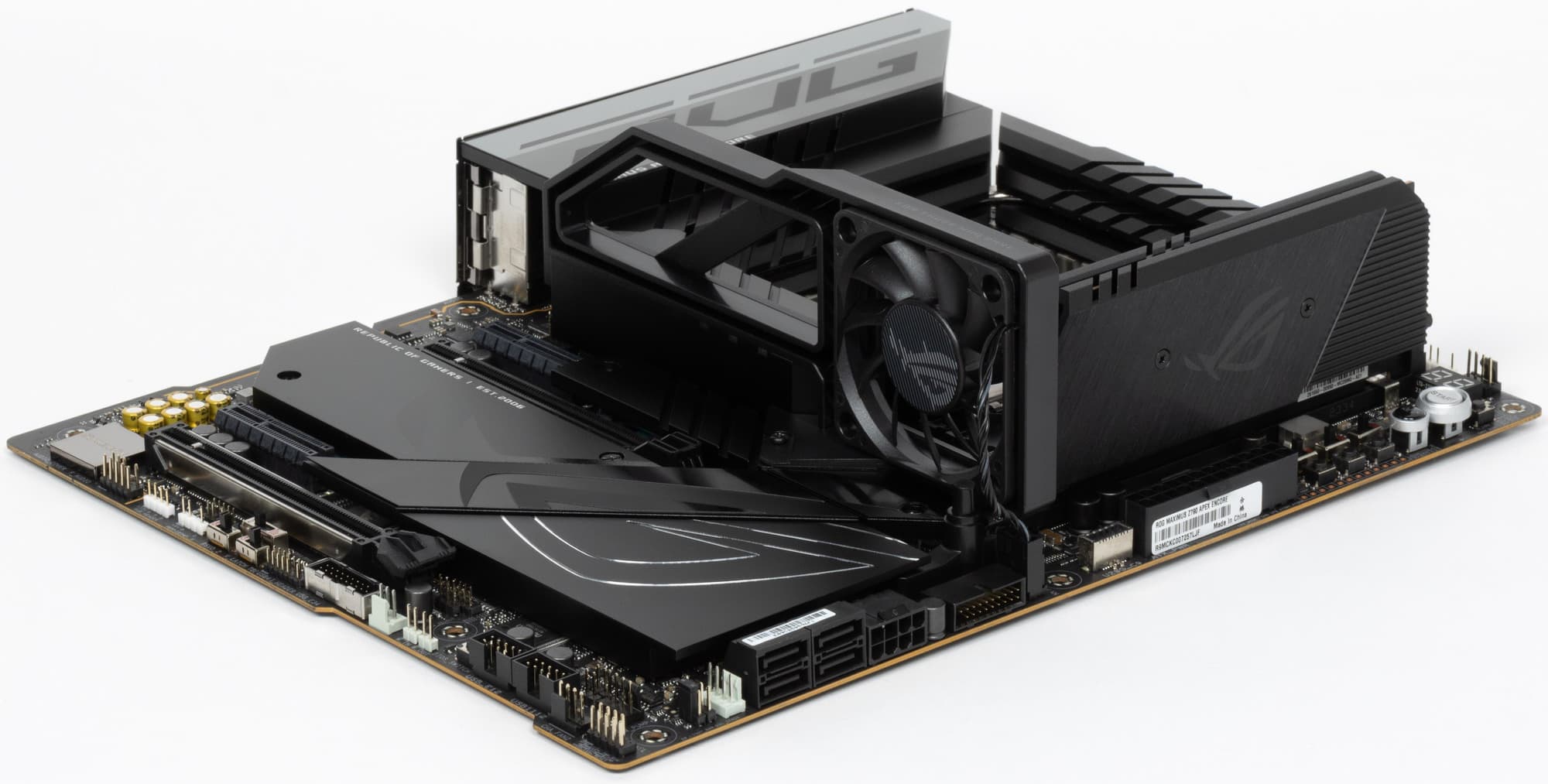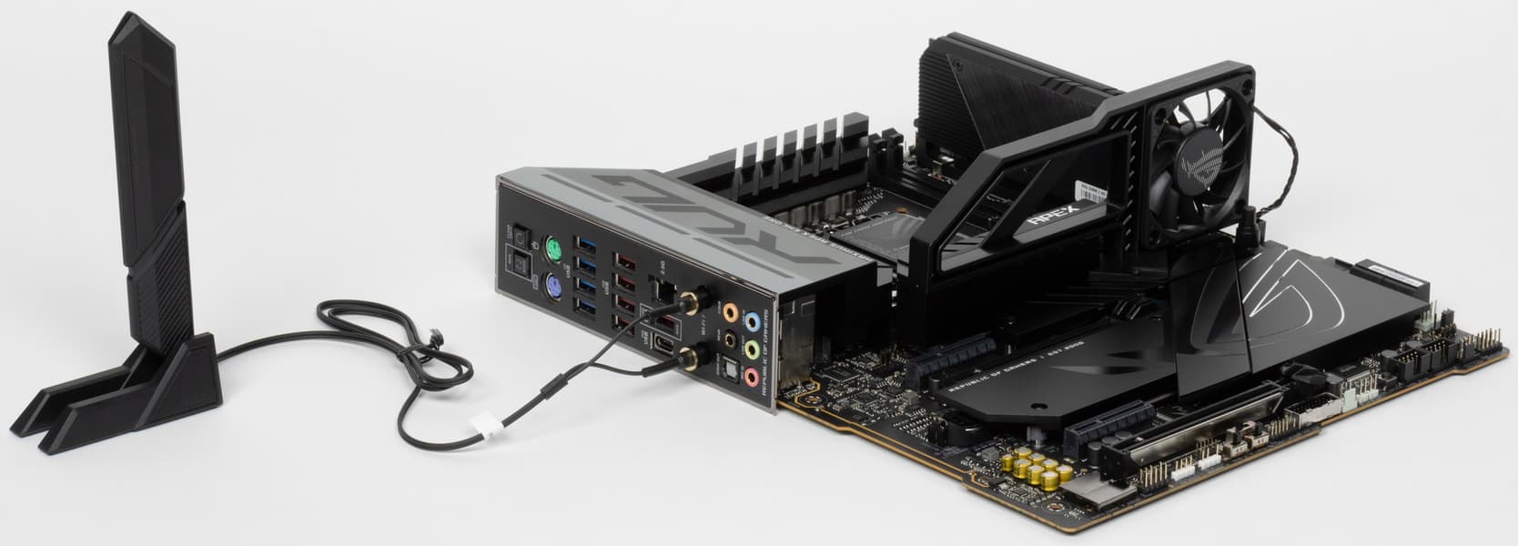 Разумеется, Asus ROG Maximus Z790 Apex Encore предлагает очень широкие возможности для любителей разгона в виде аппаратных «фишек», а также множество настроек в BIOS Setup: данная плата нацелена в первую очередь на них. Стоит упомянуть и соответствующий бонус поставки: дополнительный вентилятор для охлаждения памяти.